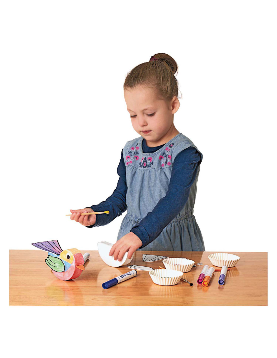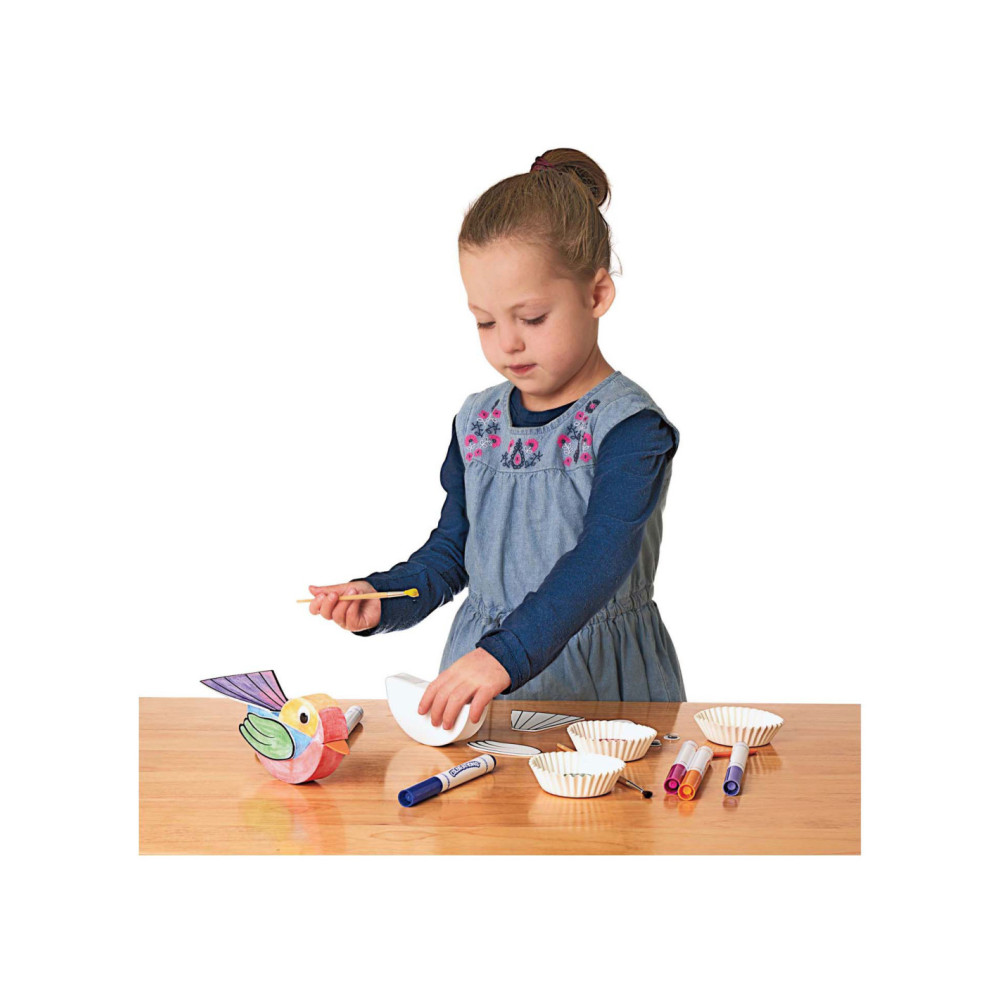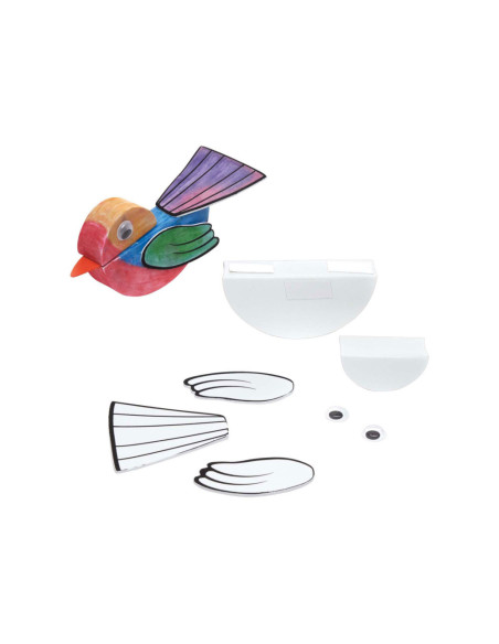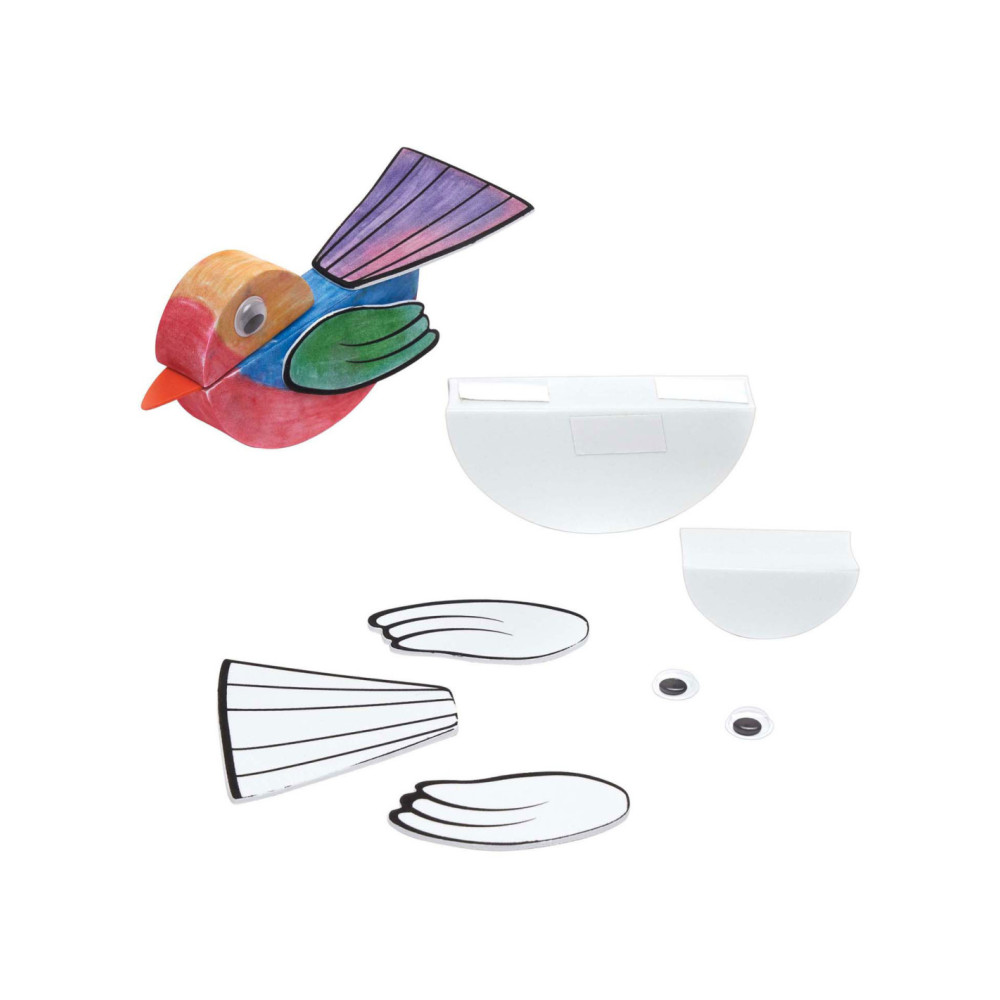 Versier en zet een vogelmodel in elkaar en laat hem bewegen om wormen te vangen! Ideaal voor knutselen tijdens de feestdagen en in de zomer.