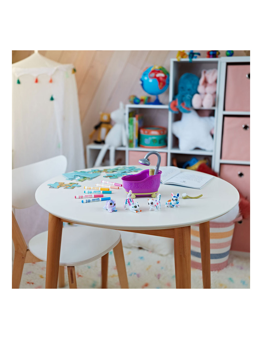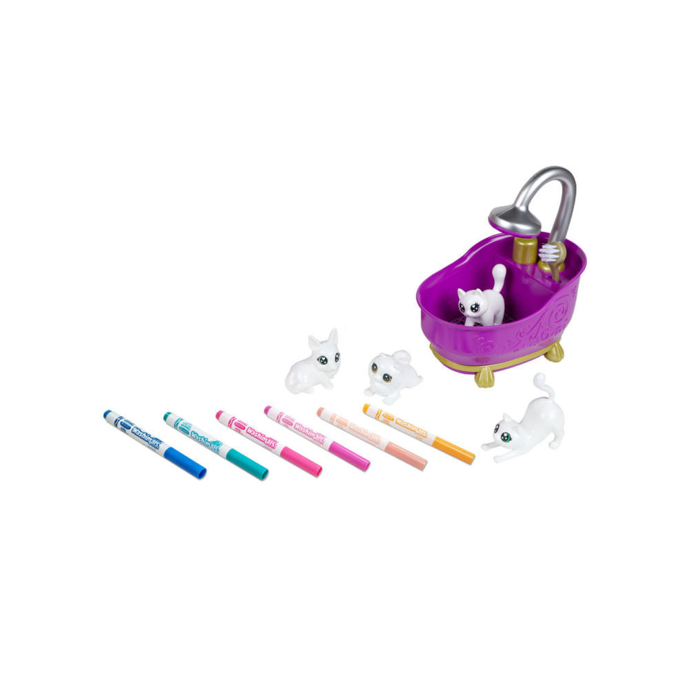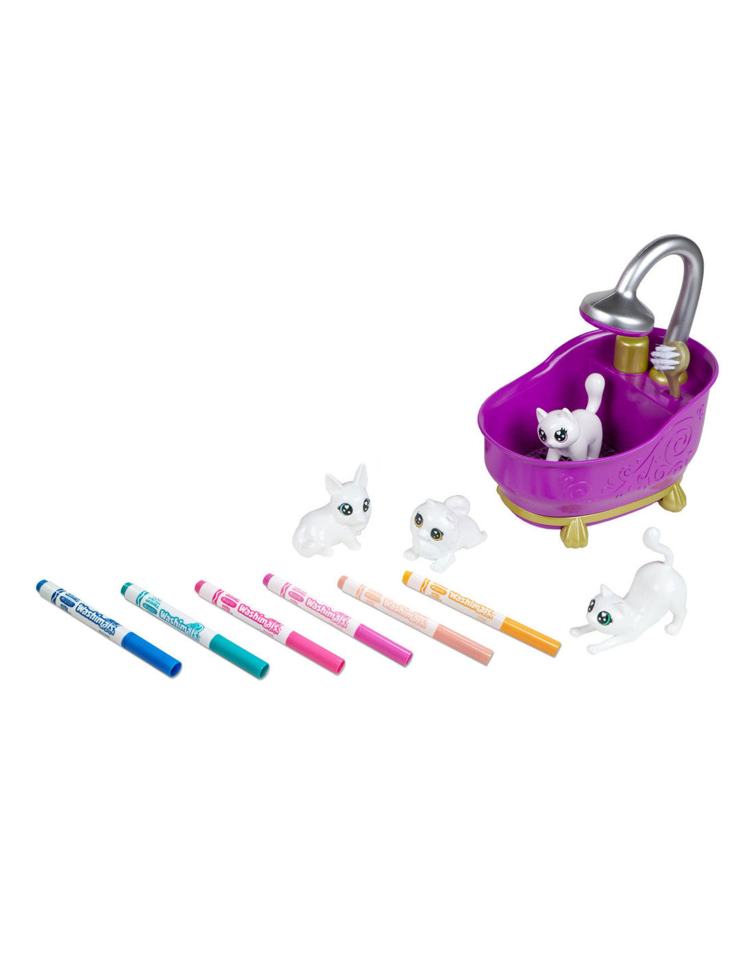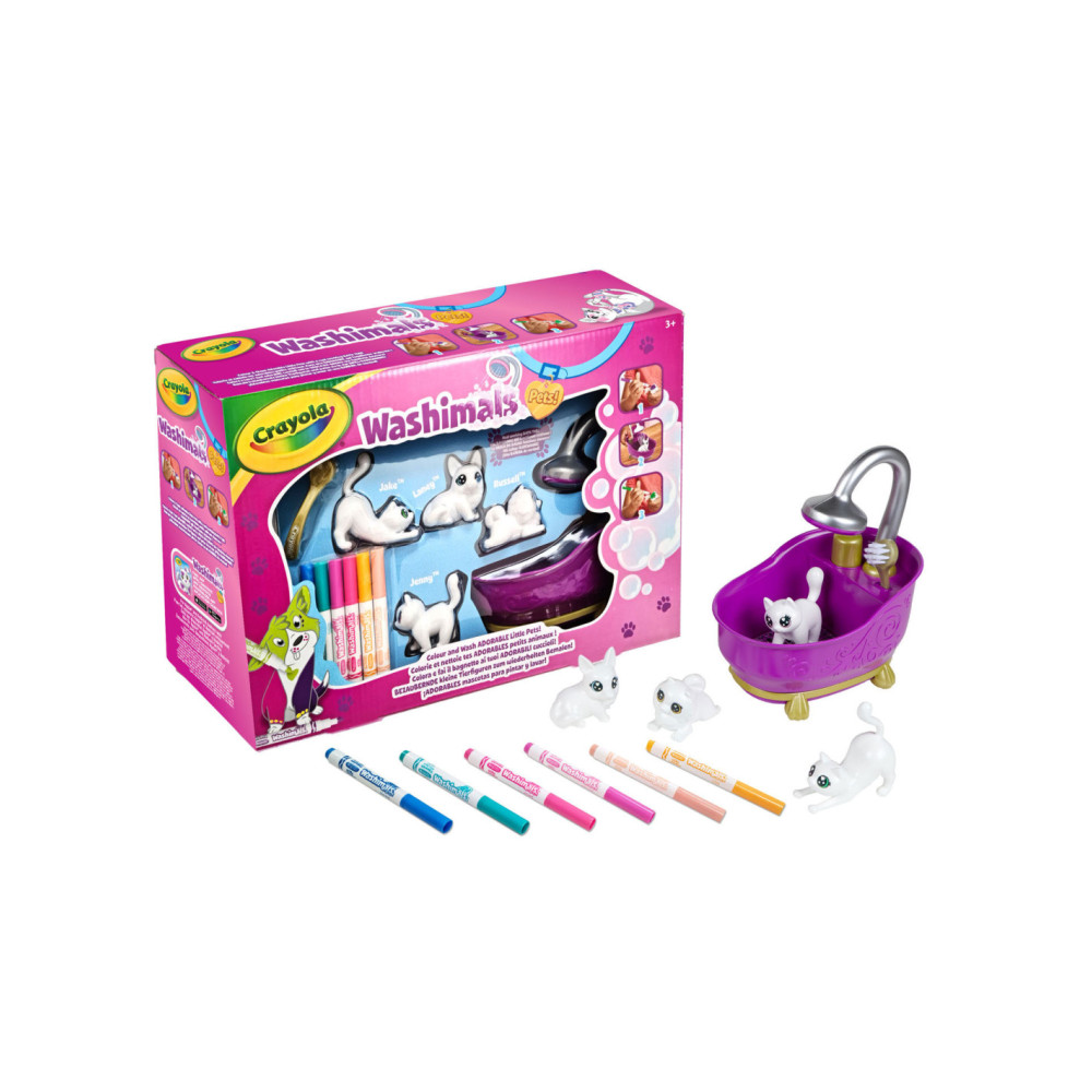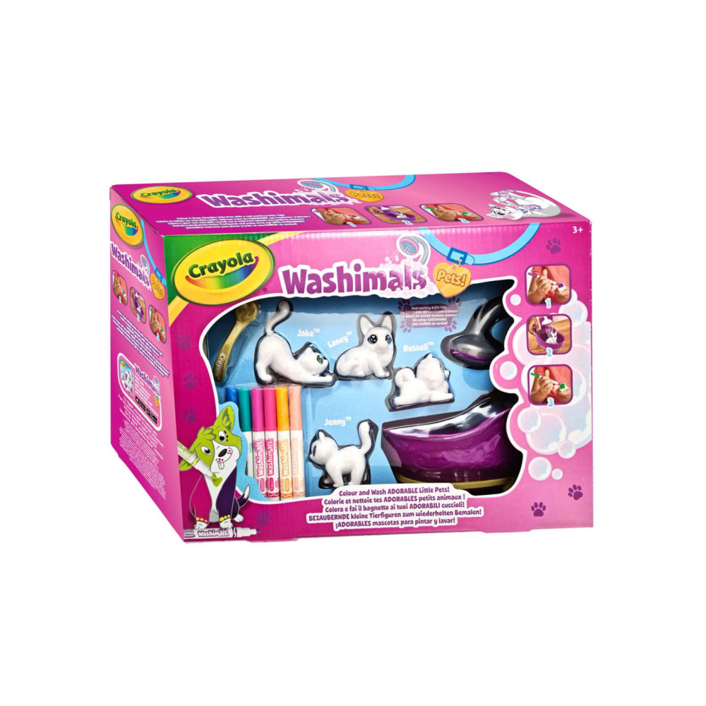 Kleur & was je schattige kleine huisdieren, daar staan de Crayola Washimals™ voor! Crayola brengt een reeks van verzameldieren om in te kleuren en te personaliseren. Geef je nieuwe huisdieren een kleurrijk design! Daarna gaan de dieren in bad waar ze schoon gespoeld worden met water. Het badje werkt echt als een douche; even pompen waardoor de Washimal-figuren nat worden, schrobben met de borstel, naspoelen, laten drogen en opnieuw beginnen. Zo zijn er eindeloze mogelijkheden om je dier te decoreren met kleur.