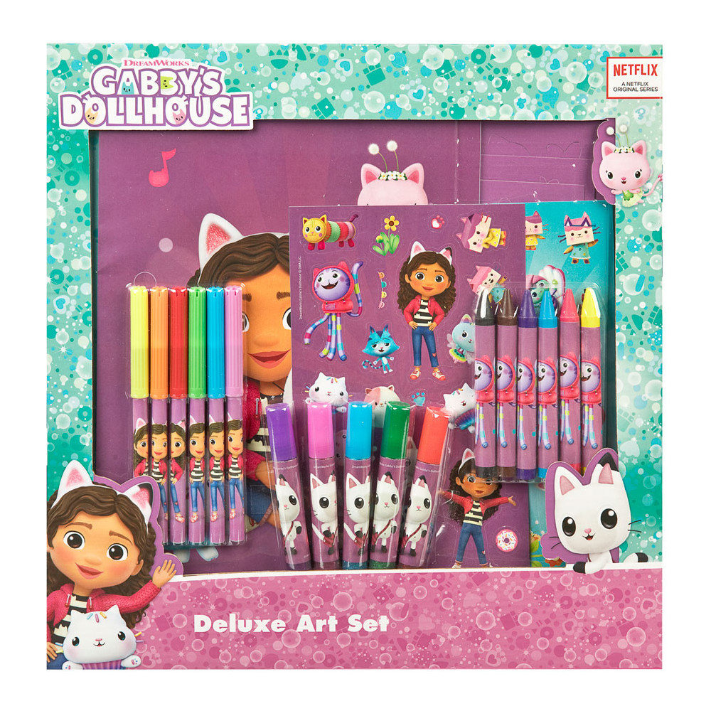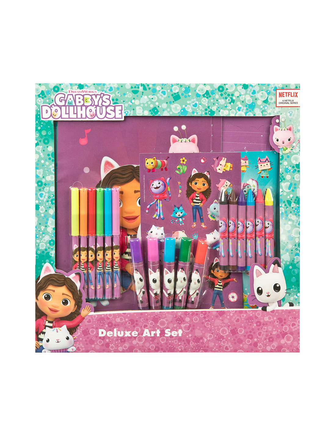 Knutselset van Gabby's Poppenhuis met verschillende soorten knutselspullen, zoals karakterstencils, vilstiften, waskrijtjes, lijm en stickers. Geschukt vanaf 3 jaar.