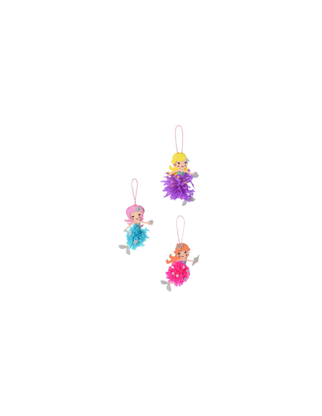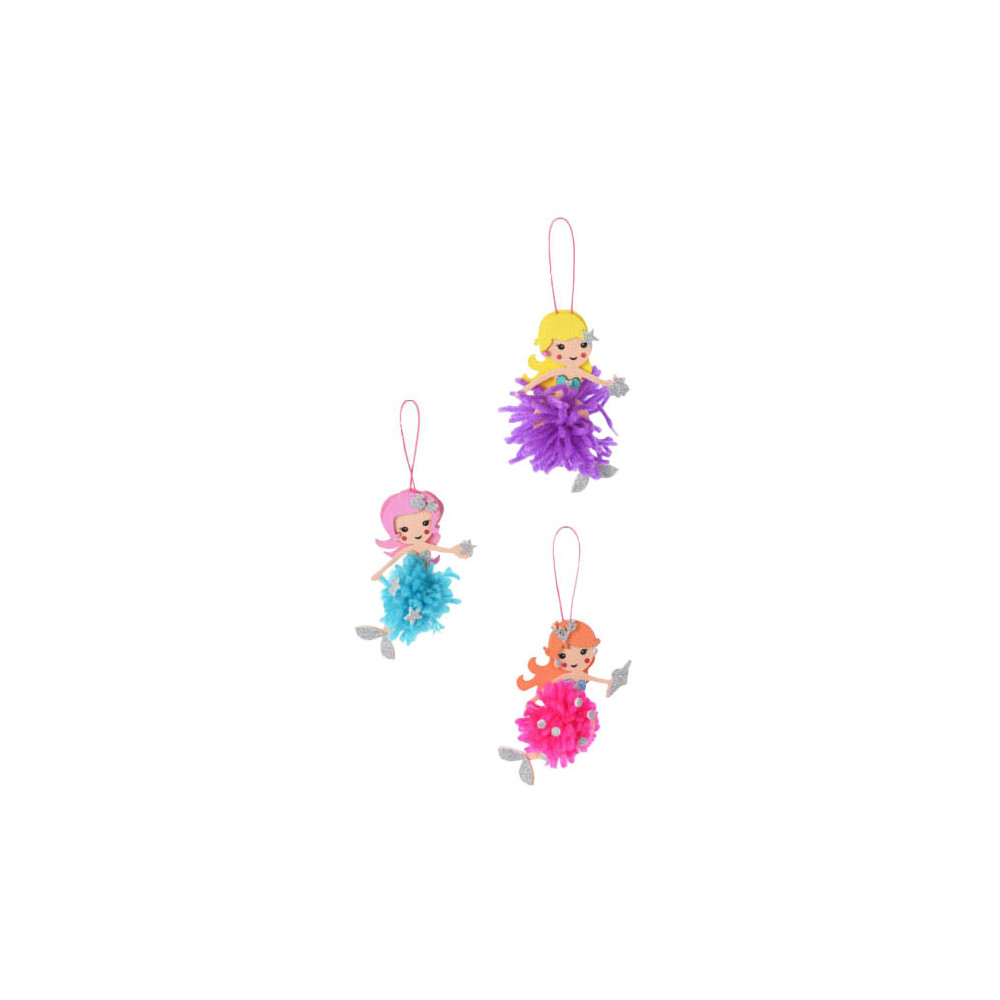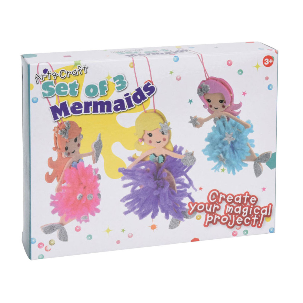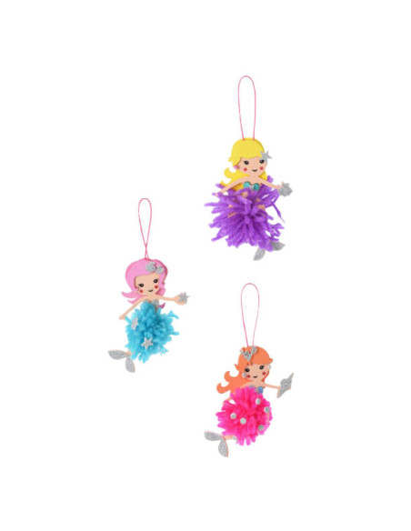 Hobbyset waarmee pompons gemaakt kunnen worden. De set bevat 3 zeemeermin figuren en wol om pompons mee te maken. De set is geschikt voor kinderen vanaf 3 jaar.