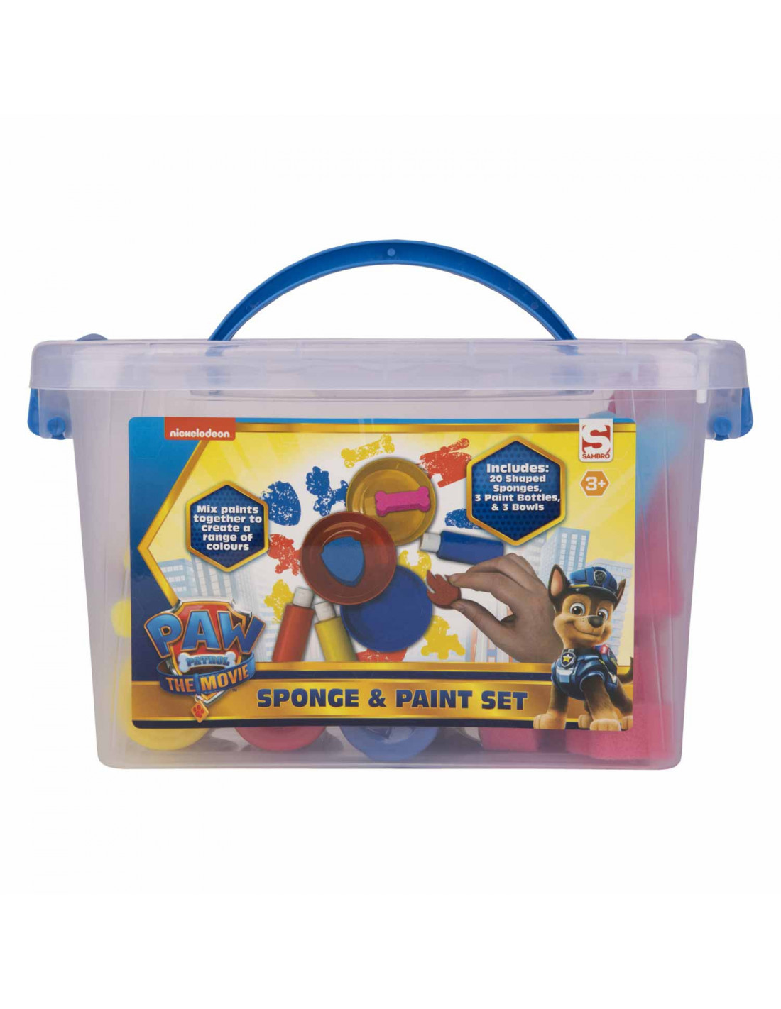 De inhoud van de knutselbox omvat 20 sponsen in leuke PAW Patrol-vormen, perfect voor het creëren van unieke texturen en ontwerpen. Daarnaast bevat de set 3 verf- en mengbakjes om kleuren te mixen en 3 tubes verf in de basiskleuren rood, blauw en geel, waarmee kinderen hun verbeelding de vrije loop kunnen laten.