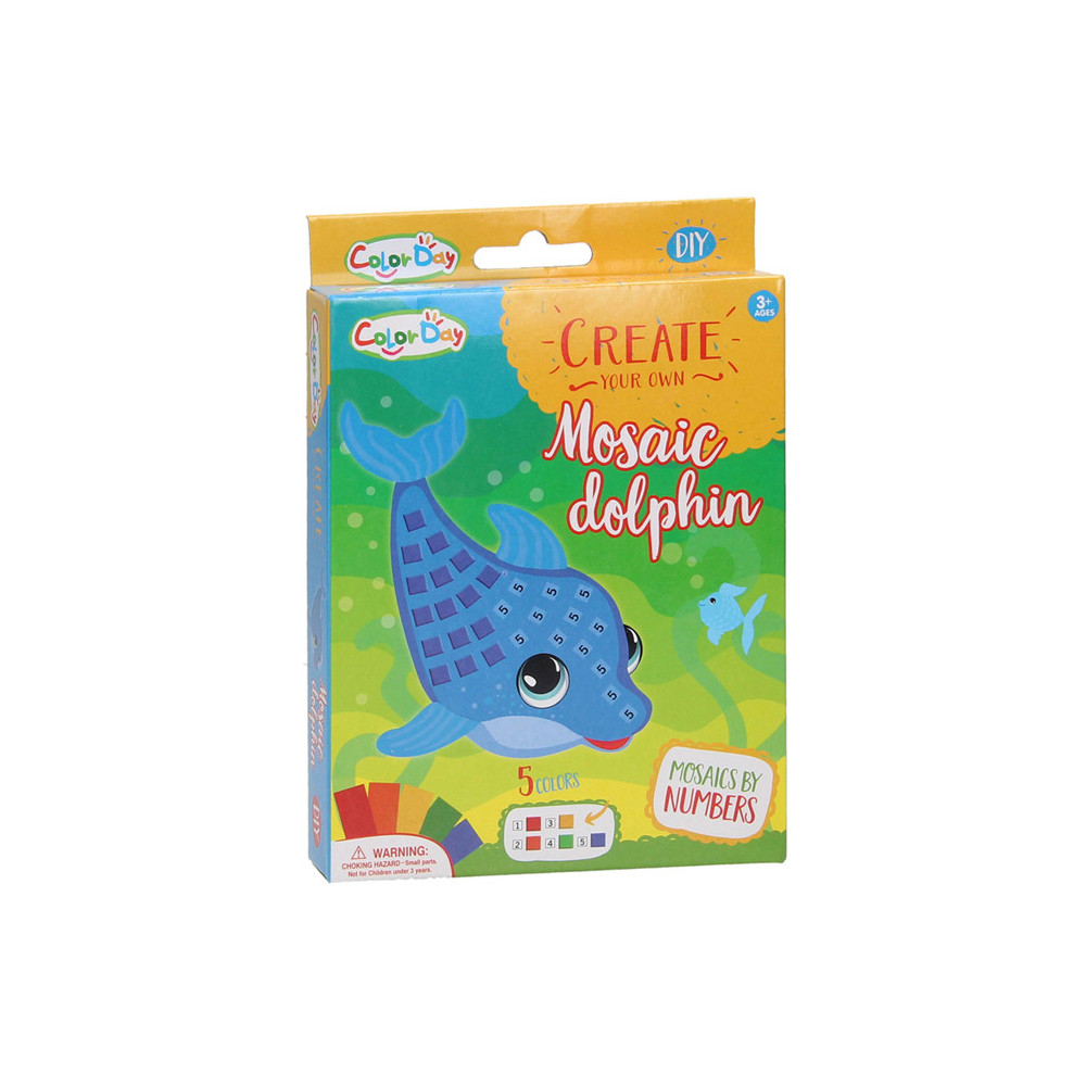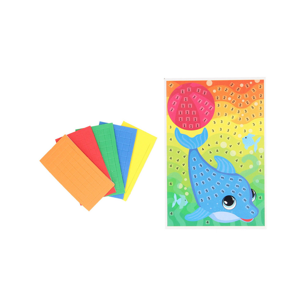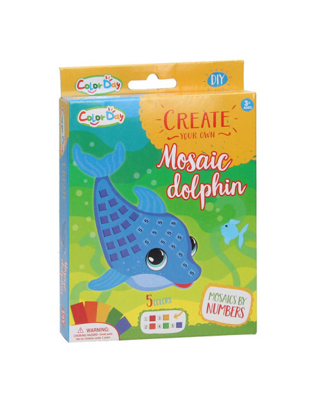 Knutselset voor het versieren van een dolfijn met mozaïekstickertjes. Geschikt vanaf 3 jaar.