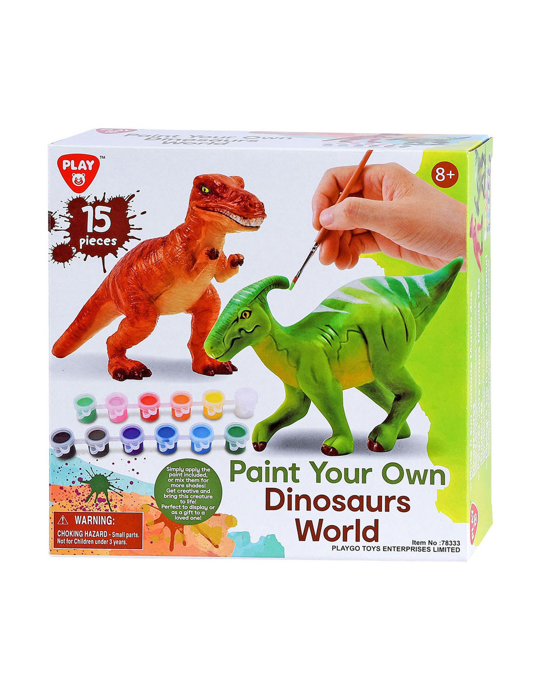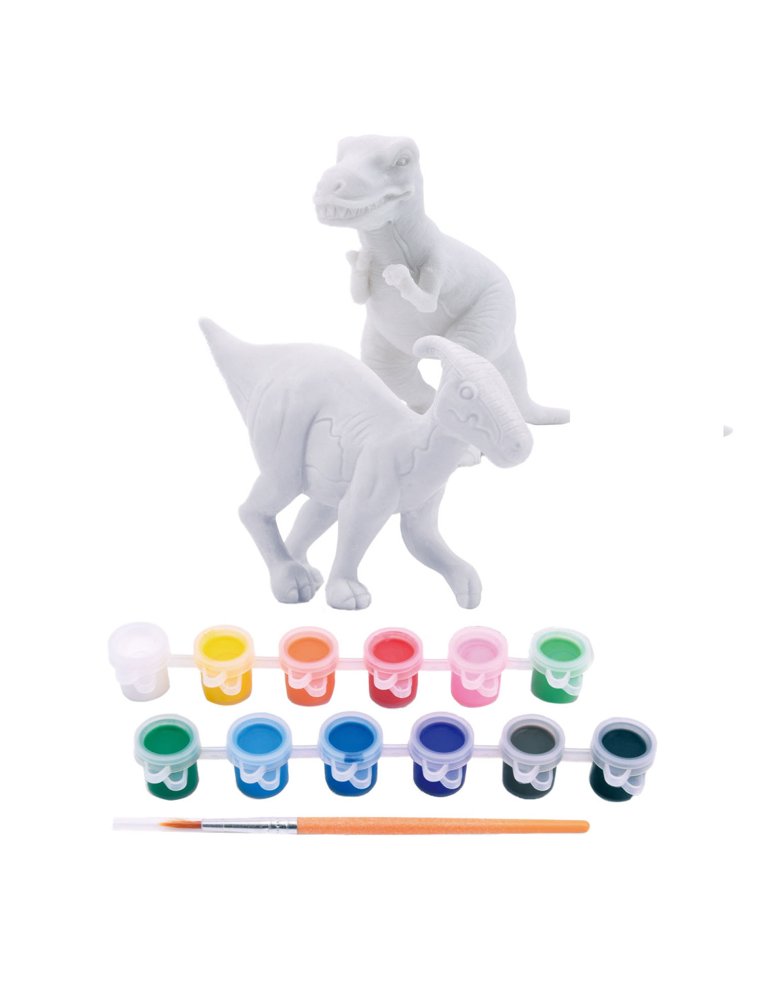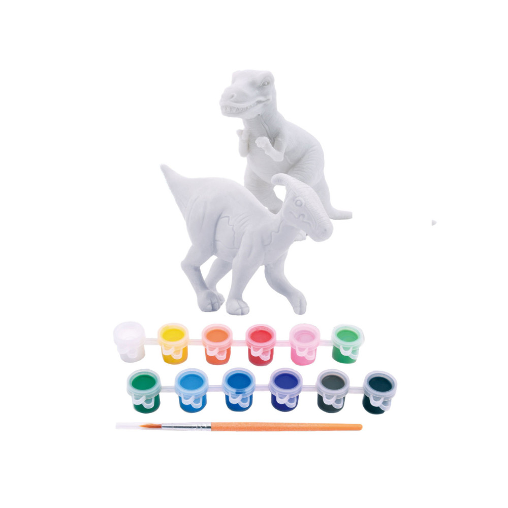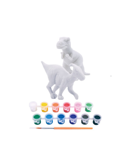 Verf je eigen dino's (T-Rex en Parasaurolophus) met deze stoere set. In de set zitten 2 blanco dino's, 1 penseel en 12 verschillende kleuren verf. Geschikt voor kinderen vanaf 8 jaar.
