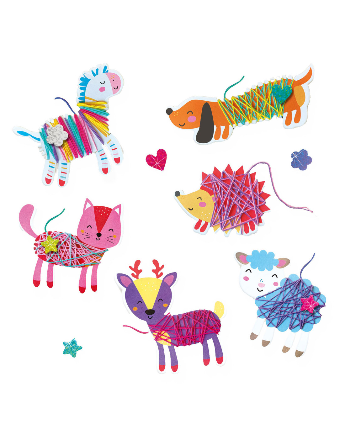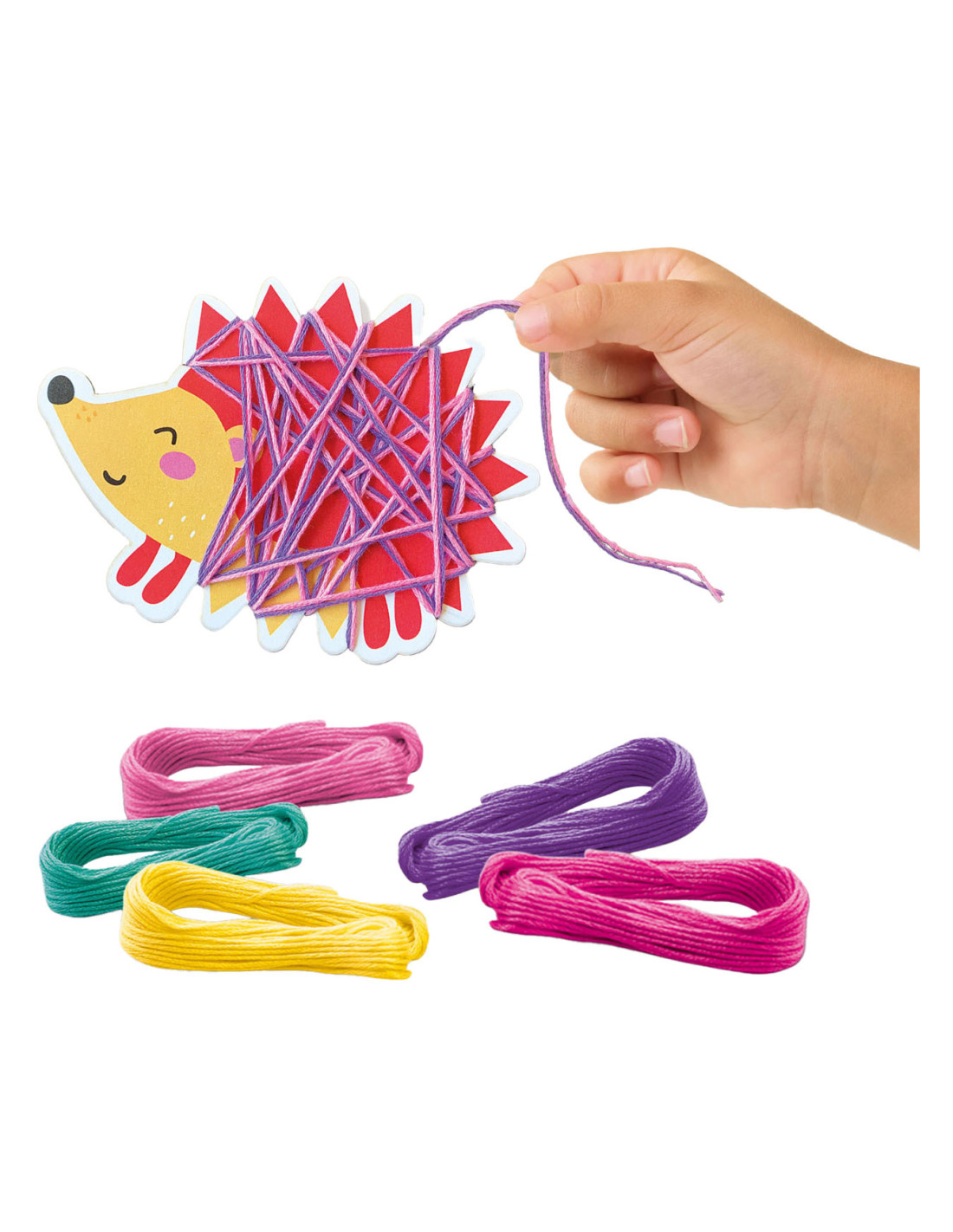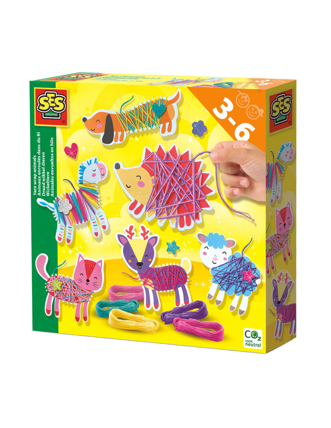 Wikkelen maar! Deze dieren hebben het koud. Met de 5 kleuren garen in deze set kun jij ze hun vachtje geven. Geef het schaap wat extra wol en wikkel de egel in een vrolijk kleurtje. Nadat de dieren het weer wat warmer hebben gekregen kun jij met de glitters stickers ze mooi versieren.