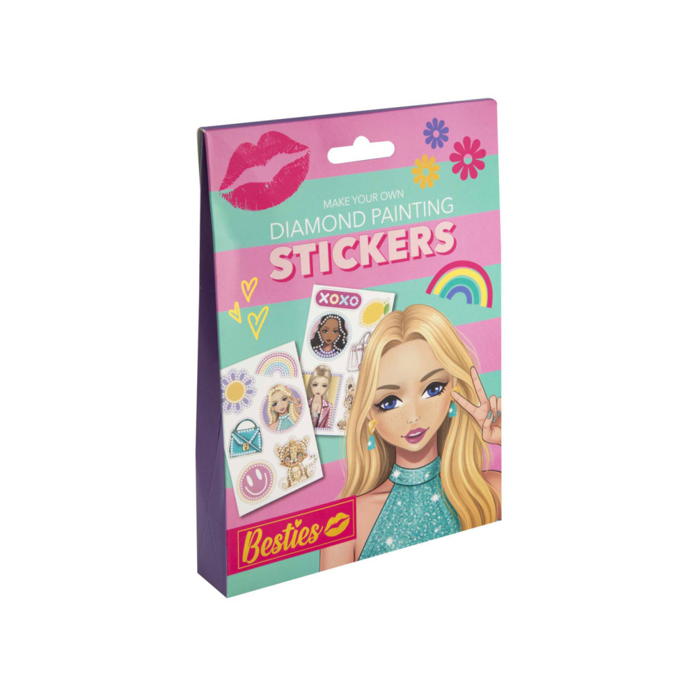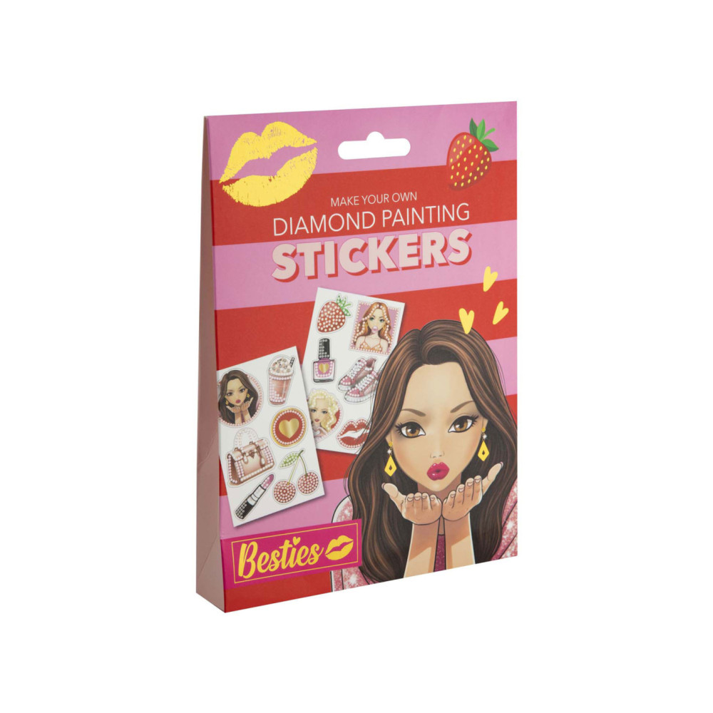 Besties diamond painting stickers maken. Met meer dan 880 steentjes, pennetje, tray en 12 stickers. Geschikt voor kinderen vanaf 6 jaar oud.