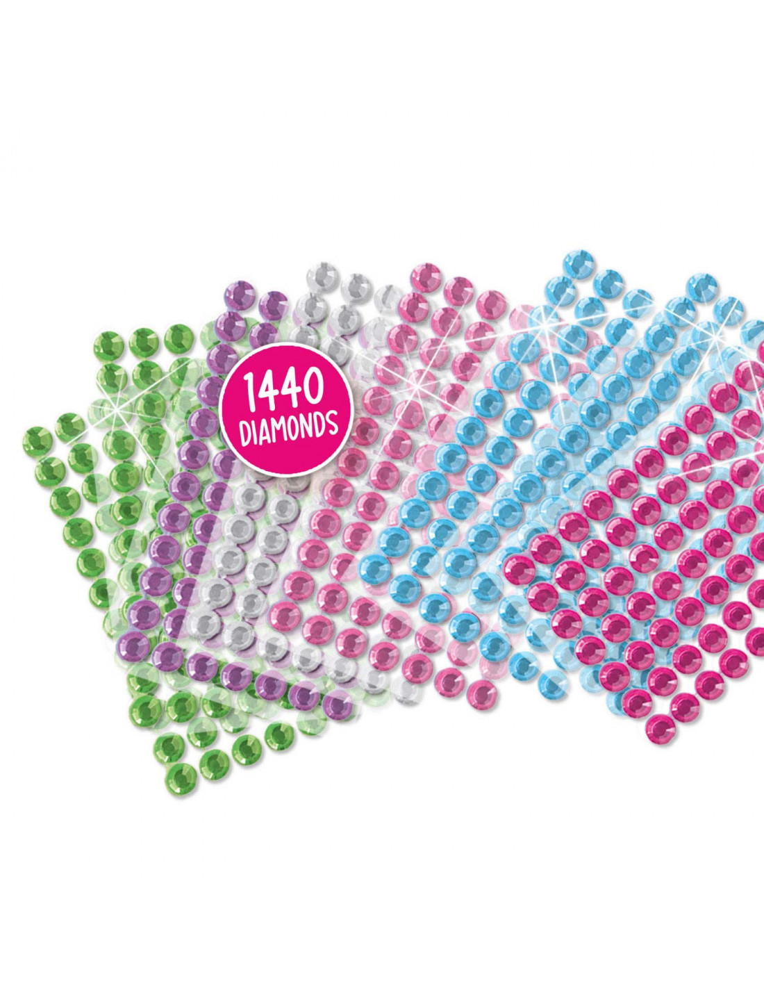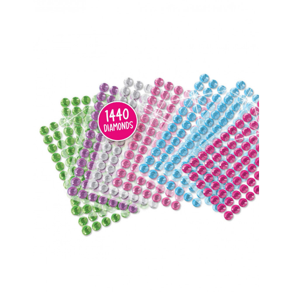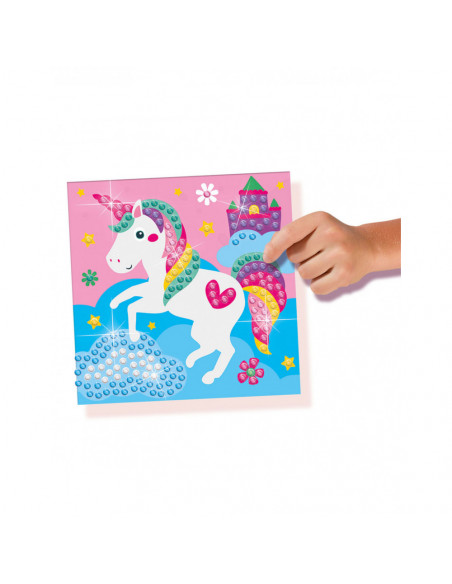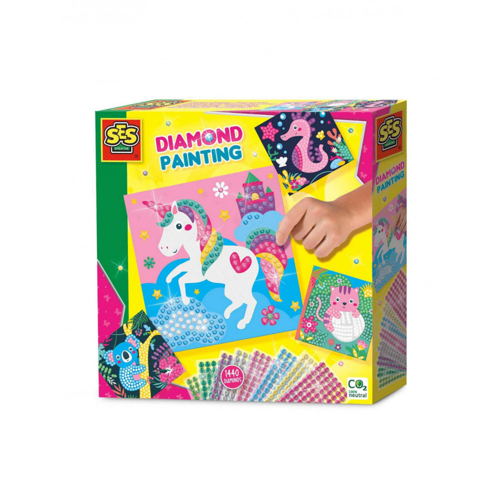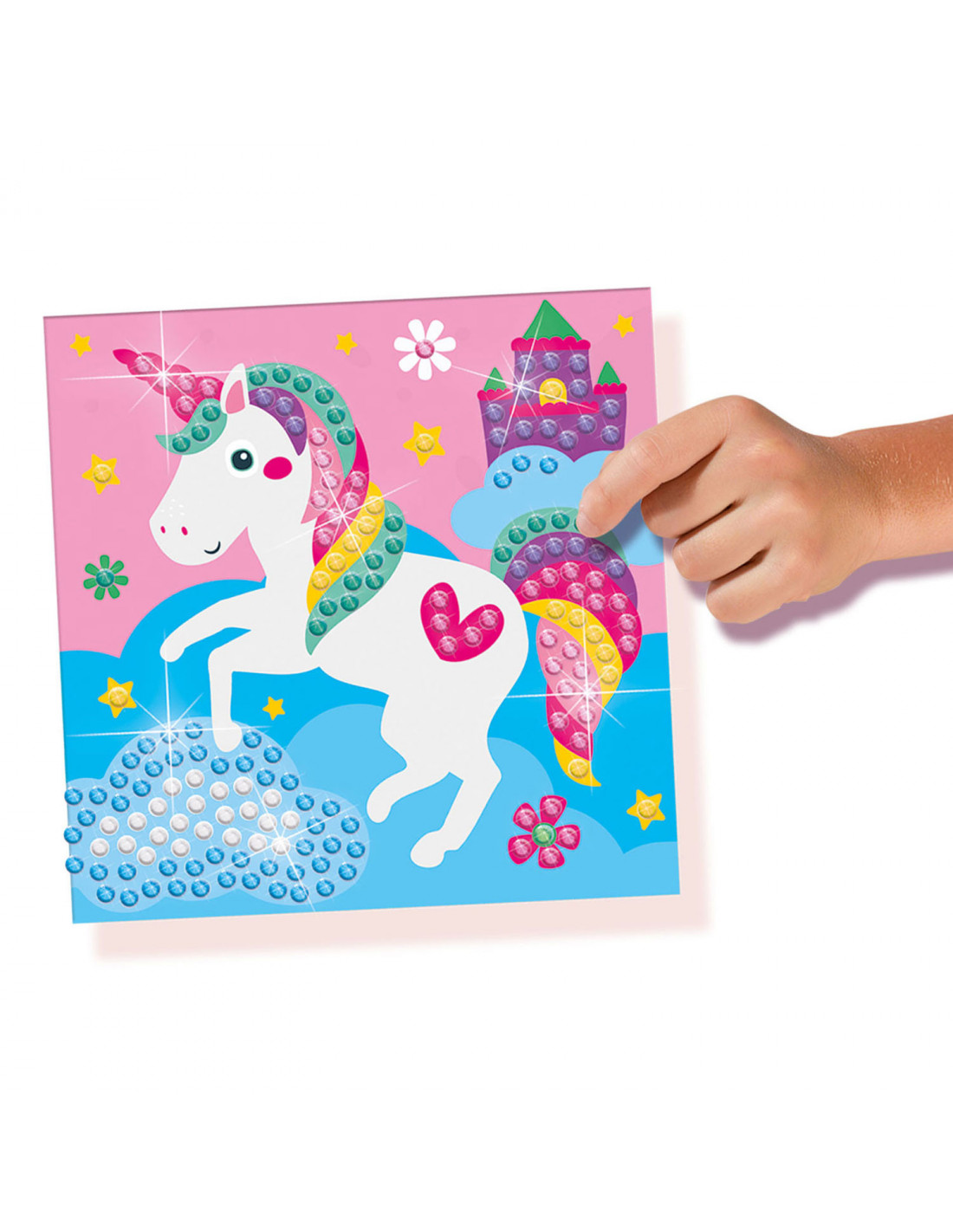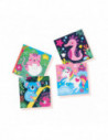 Met deze grote Diamond painting kaarten met extra veel diamant steentjes ben je wel even druk. De glimmende diamantstippen zijn zelfklevend, en daarmee dus heel eenvoudig te plakken op de vrolijke kaarten. Versier de unicorn, kat, koala en het zeepaardje.
