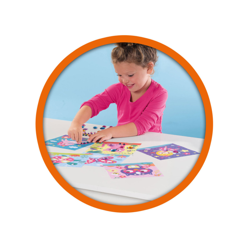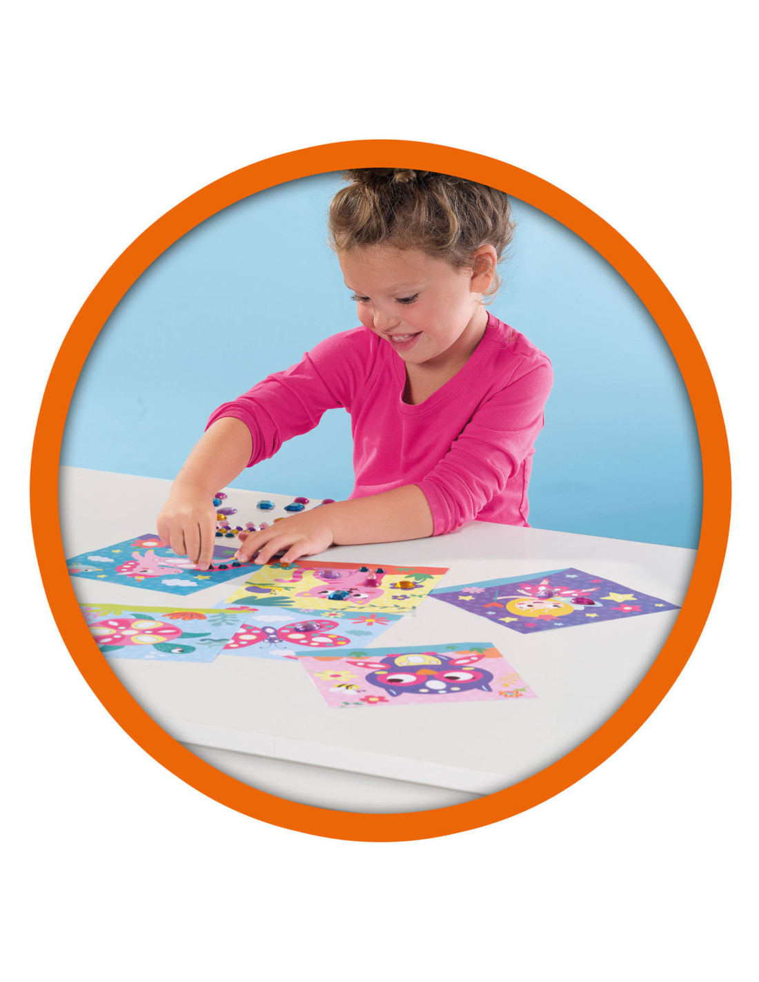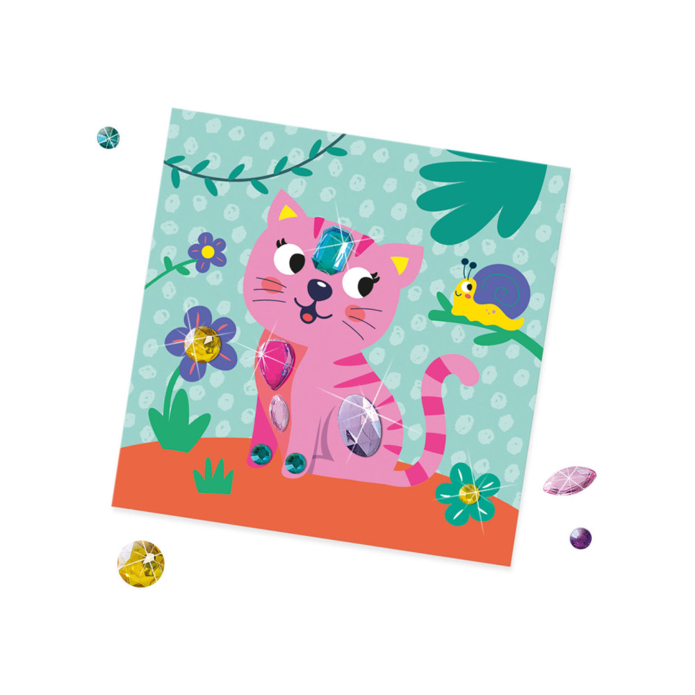 Diamond painting, ook voor de allerkleinsten! Met deze supermooie mega diamant stickers worden de mooiste diamond paintings gemaakt. De extra grote stenen zijn zelfklevend en kunnen op de 6 vrolijke kaarten worden geplakt. Maak jij eerst een glinsterende schildpad of toch een magische unicorn?