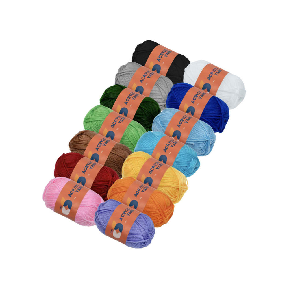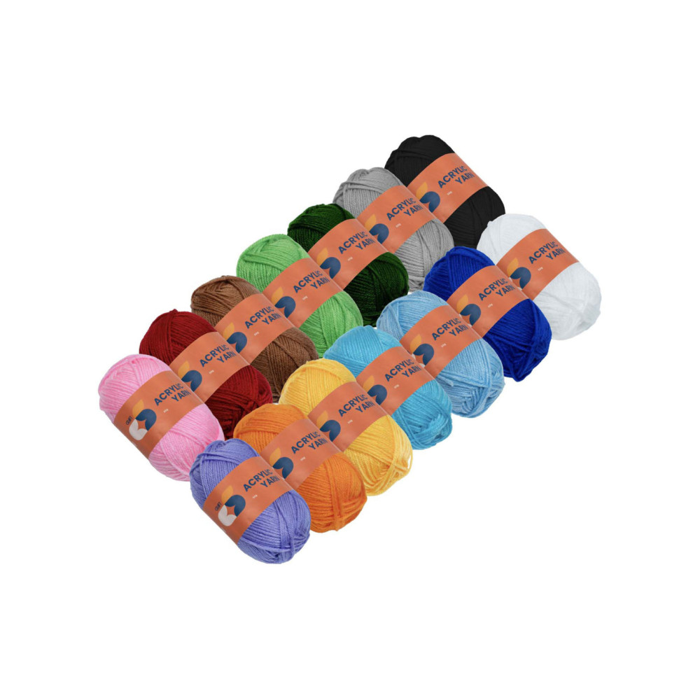 Acryl garen set in 14 verschillende kleuren. Elke bolletje weegt 50 gram.