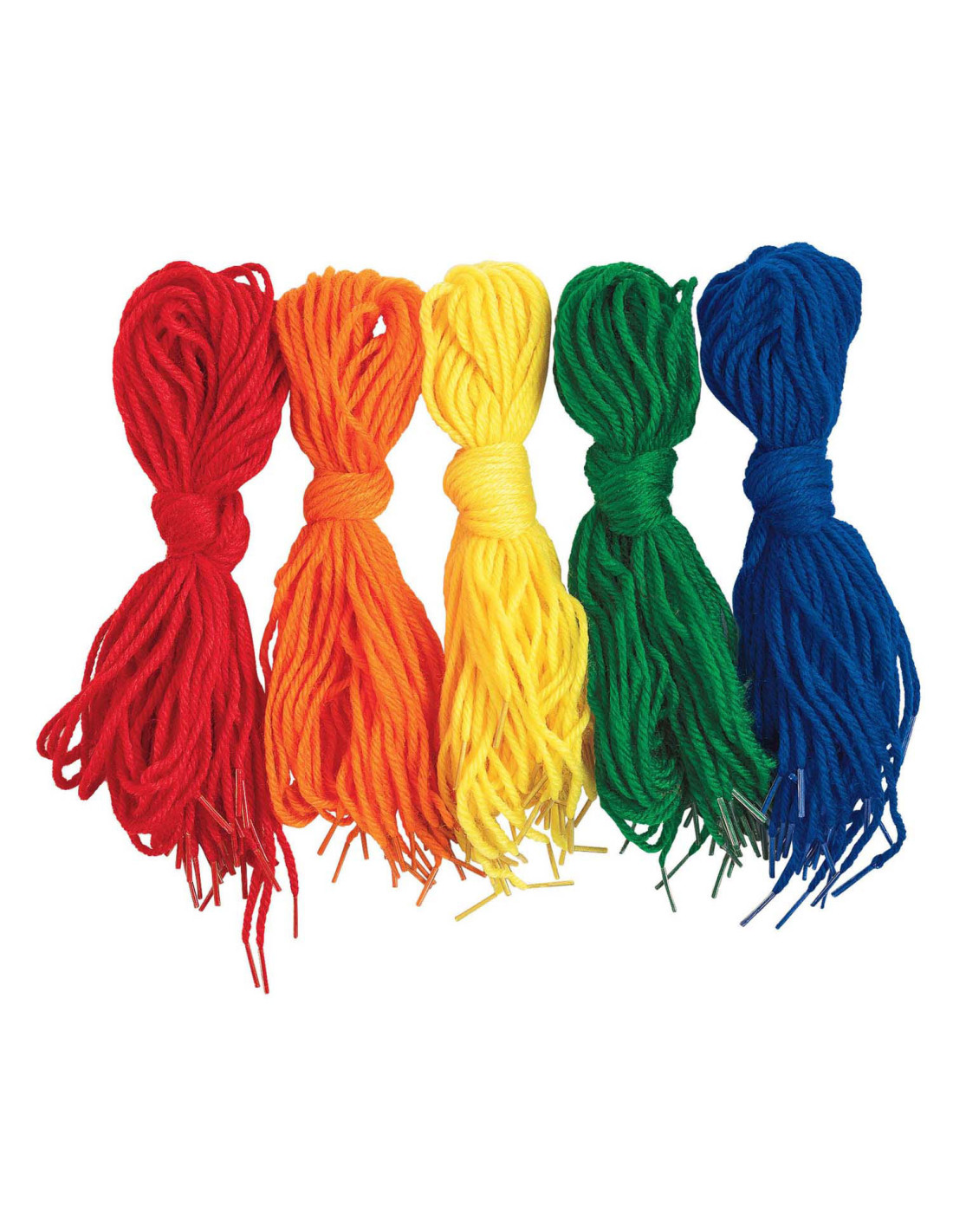Set van 100 acrylgaren veterkoorden plastic tips. De veter is gemakkelijk in gebruik voor kinderen en kan worden afgeknipt als het project is voltooid. Kan ook worden hergebruikt voor meerdere projecten om kinderen te leren kantklossen of weven. Kleuren: blauw, rood, oranje, groen en geel.
