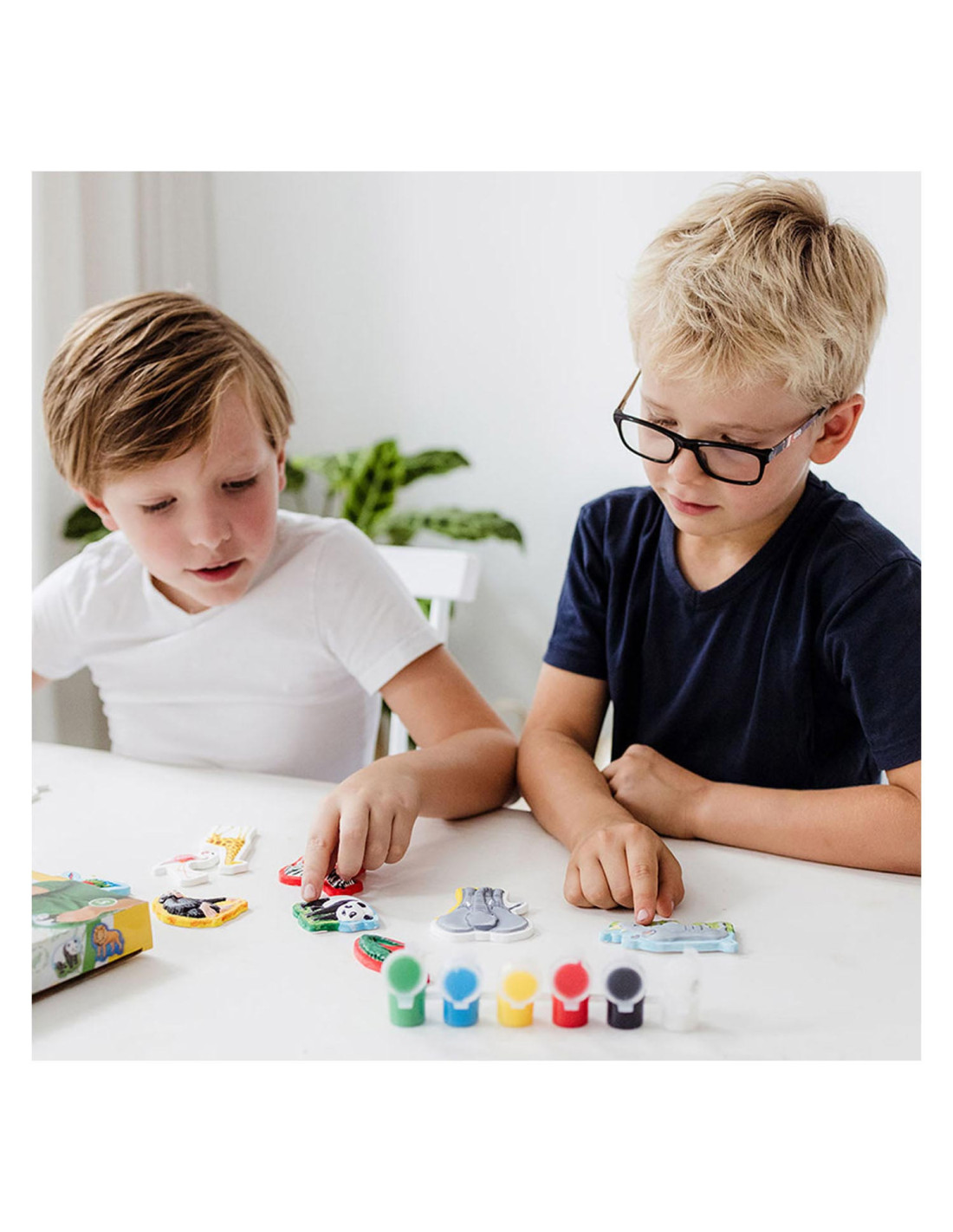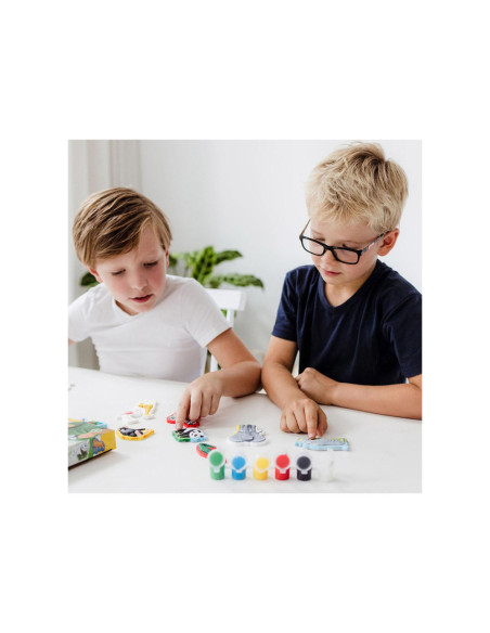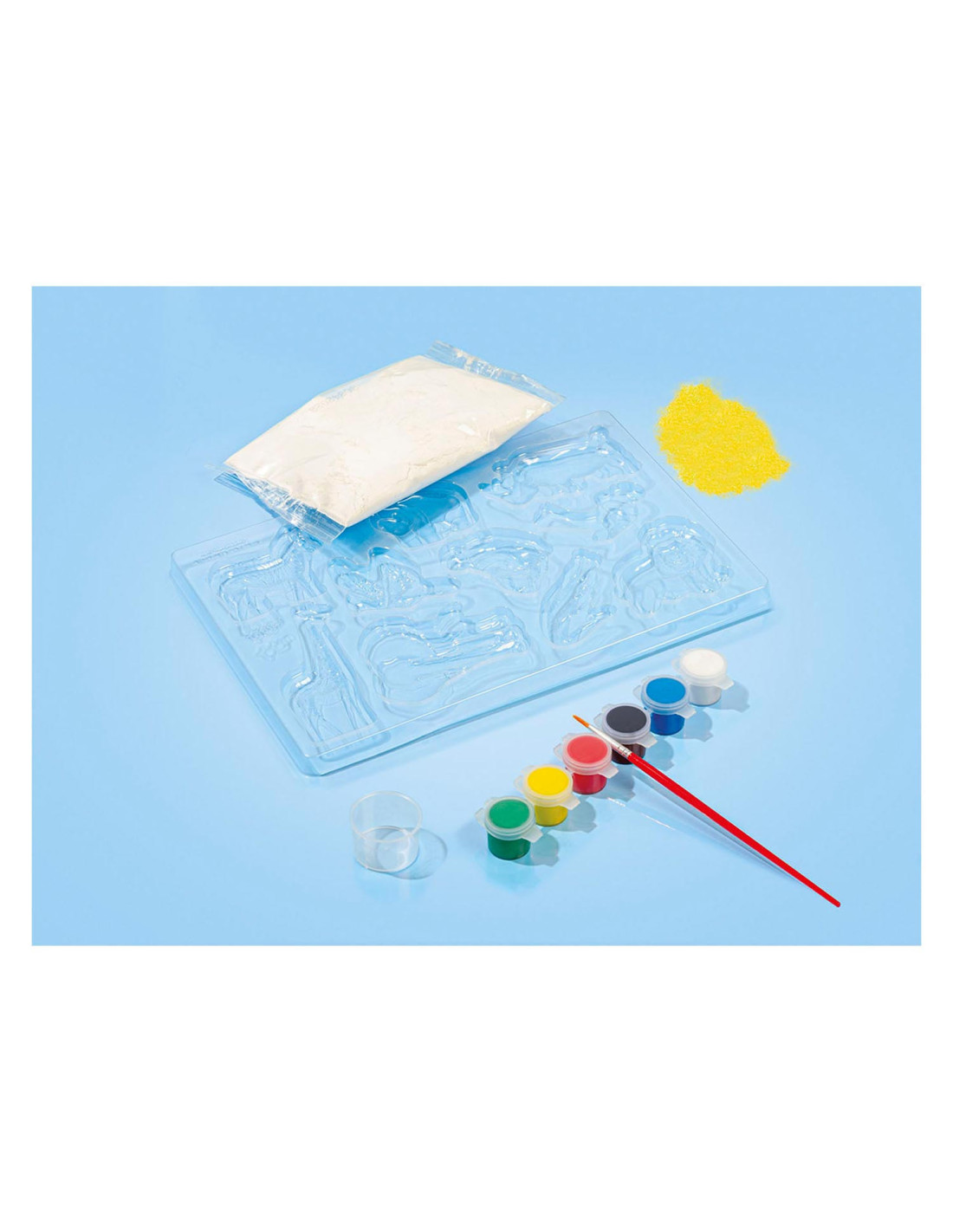 Knutselset van Totum waarmee je 10 wilde dieren van gips maakt en beschildert: aap, flamingo, giraffe, krokodil, leeuw, olifant, neushoorn, papegaai en zebra. Inclusief 6 potjes verf en een penseel. Geschikt voor kinderen vanaf 5 jaar oud.