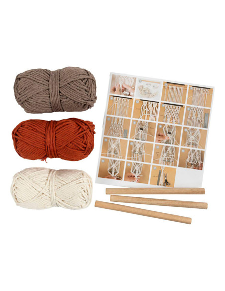 Met deze set maakt u uw eigen macrame bloemenhanger. Bevat alle materialen en instructies die u nodig hebt.Wilt u leren hoe u een bloemhanger maakt met slechts drie macrameknopen? Dan is deze set perfect voor u. De set bevat alles wat u nodig hebt om aan de slag te gaan. Knoop de 12 macrametouwen om een houten stok begin met een dubbel draad en een opzetlus. Maak de hanger met een vierkante knoop en breng alles samen in een wikkelknoop. Het resultaat is de mooiste bloemenhanger die u overal in huis kunt gebruiken. Er staan instructies op de achterkant van de doos, maar u kunt ook de QR-code scannen en de online-instructies volgen.Inhoud: Macramekoord, houten hanger