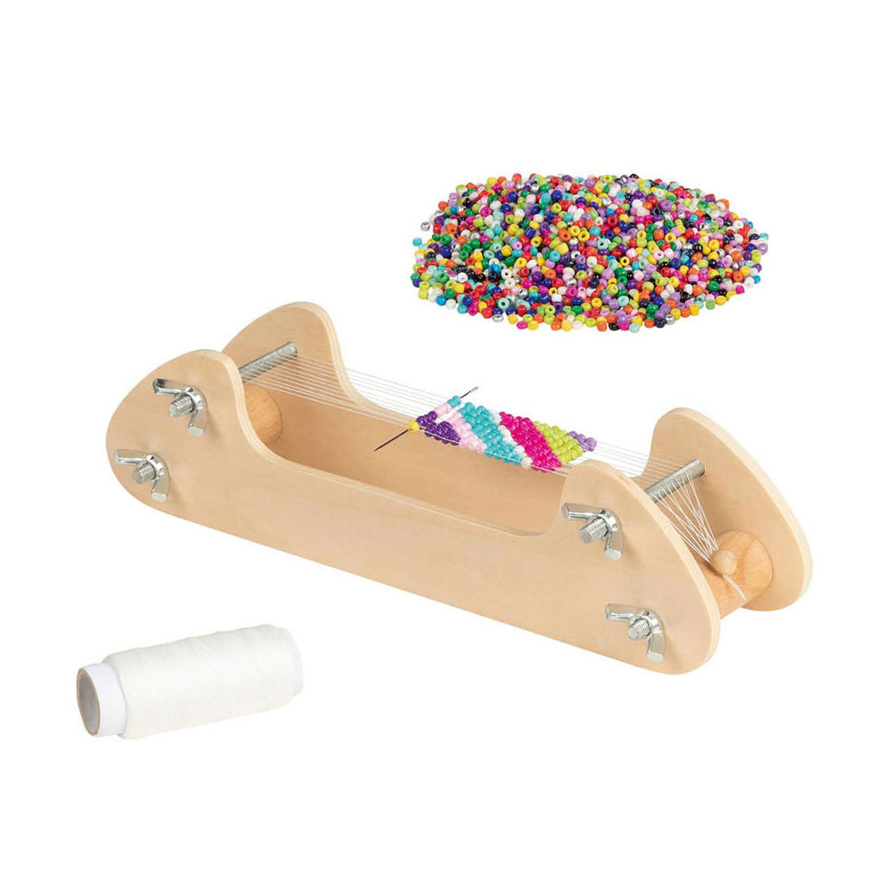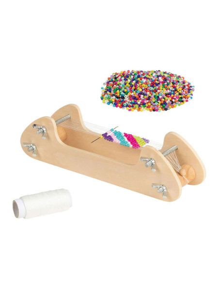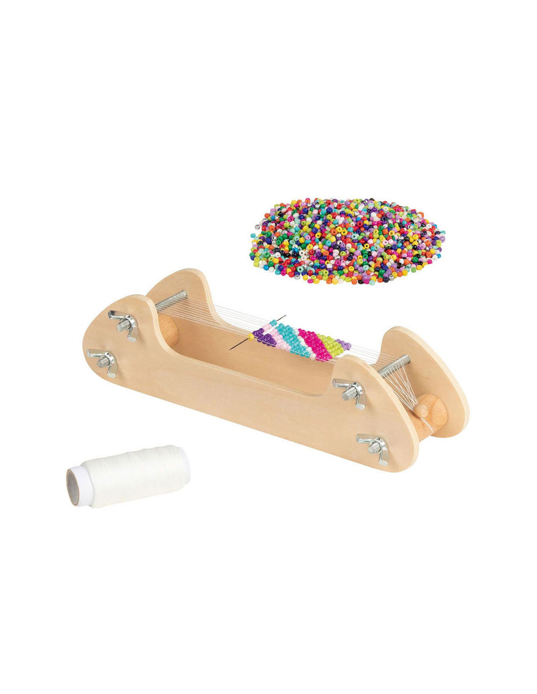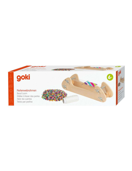Goki Houten Kralenweefraam incl. draad, naald en acrylkralen. Afmetingen: 21,7 x 6,7 x 5,6 centimeter. Geschikt vanaf 6 jaar.