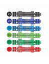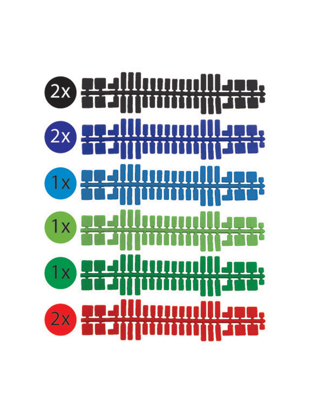 Deze set bevatde kleuren zwart (2x), donkerblauw (2x), rood (2x), lichtblauw (1x), lichtgroen (1x) en donkergroen (1x). Verpakt per 9 stuks.