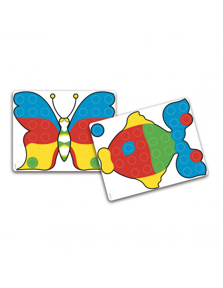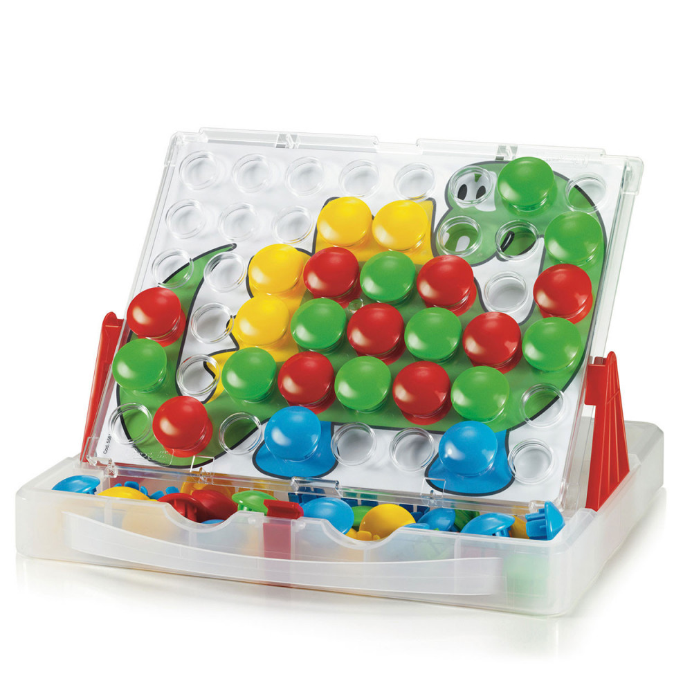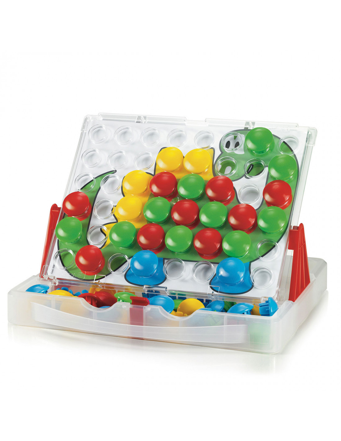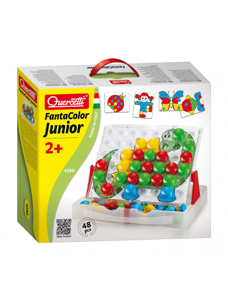 Met deze Quercetti FantaColor Junior set kunnen kinderen gemakkelijk hun eerste prachtige creaties samenstellen door het plaatsen van de 48 grote pinnen in het geperforeerde bord. Kinderen kunnen met dit spel voortborduren op de meegeleverde afbeeldingen of ze kunnen uiteraard hun eigen creaties maken. Uitstekend voor de hand-oogcoördinatie. Om opnieuw te beginnen draai het bord gewoon om en druk de pinnen er uit. De set wordt geleverd met 48 grote pinnen in 4 verschillende kleuren, een geperforeerd bord en 16 leuke afbeeldingen. Het bord wordt tevens geleverd met 2 kleine steuntjes zodat het mooi rechtop kan staan. Geschikt voor kinderen vanaf 2 jaar.