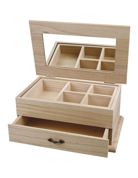 Deze prachtige ruime houten juwelendoos met lift up spiegel, lade en uitneembaar vak is een uniek en decoratief product, gemaakt van hoogwaardig hout en voorzien van vele opbergmogelijkheden. Bovendien, door de eenvoudige decoratie-mogelijkheden, kunt u het uniek maken en cadeau geven aan uw geliefden.