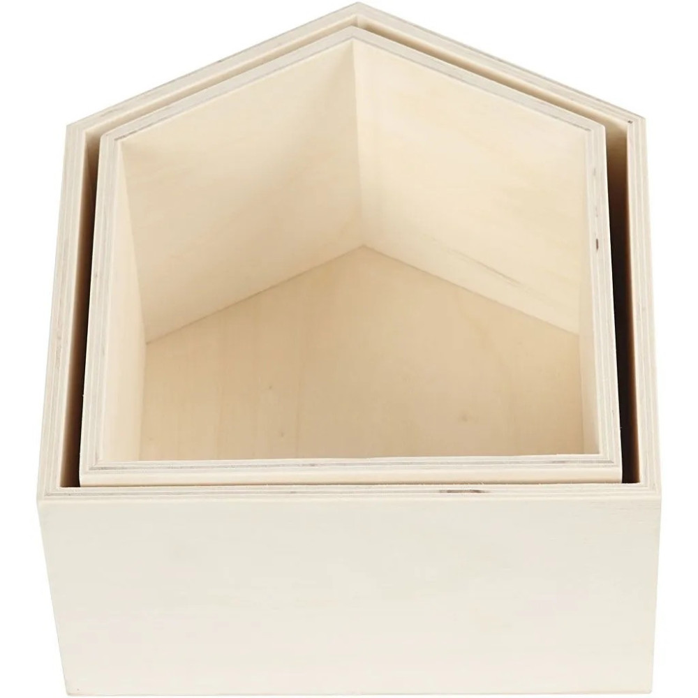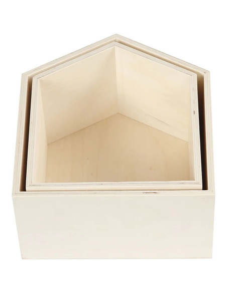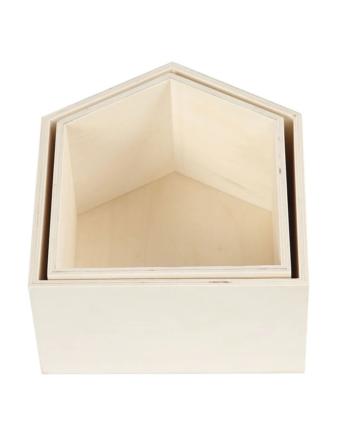 Deze set houten kistjes in de vorm van een huis zijn een unieke en stijlvolle toevoeging aan elk interieur. De set bestaat uit kistjes in verschillende maten, waardoor er voor elk doel een geschikte oplossing is. De kistjes zijn gemaakt van licht hout en hebben een natuurlijke uitstraling, waardoor ze perfect passen in een rustieke of landelijke omgeving.