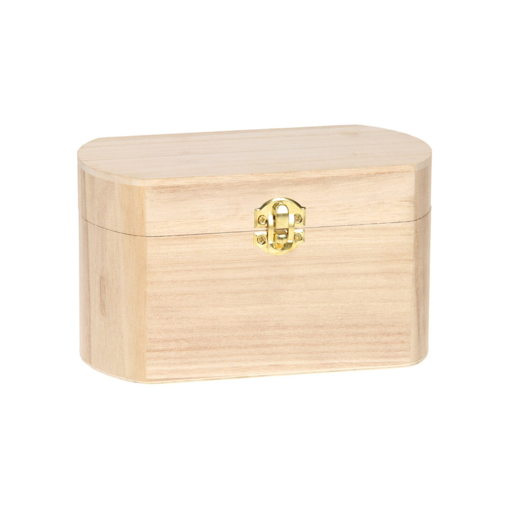 Versier je eigen houten kist met de mooiste kleuren! Het kistje heeft een goudkleurige sluiting. Exclusief versieringsspullen.