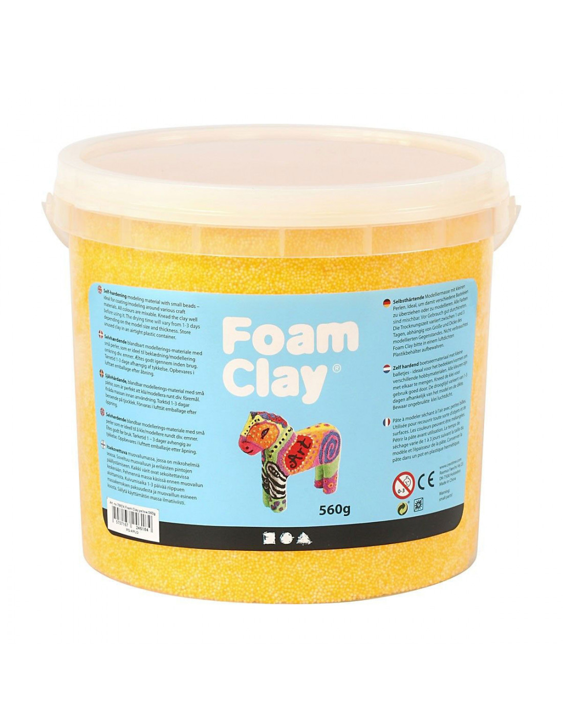 Zelfhardend geel boetseermateriaal met kleine balletjes - ideaal voor het bedekken/vormen om verschillende producten en objecten. Verpakt in een praktisch potje - bewaar ongebruikte klei in een luchtdichte plastic container. Inhoud: 1 pot met 560 gram foam clay.