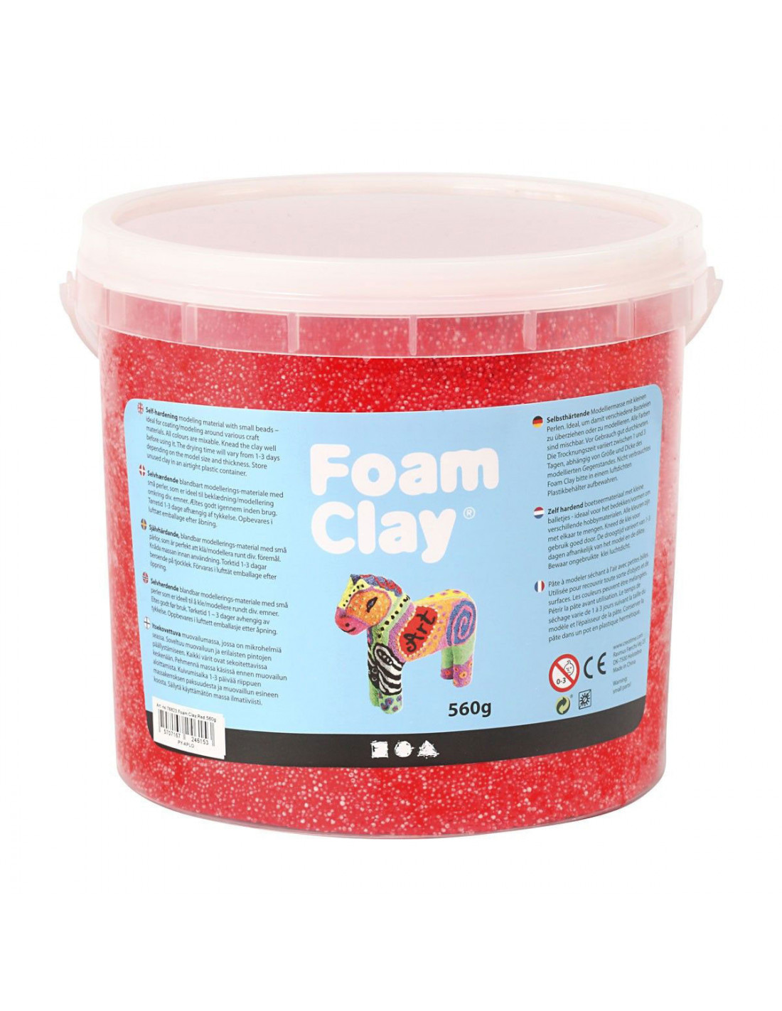 Zelfhardend rood boetseermateriaal met kleine balletjes - ideaal voor het bedekken/vormen om verschillende producten en objecten. Verpakt in een praktisch potje - bewaar ongebruikte klei in een luchtdichte plastic container. Inhoud: 1 pot met 560 gram foam clay.