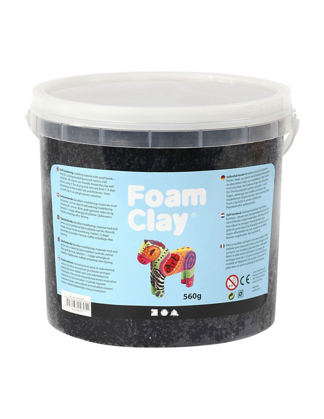 Zelfhardend zwart boetseermateriaal met kleine balletjes - ideaal voor het bedekken/vormen om verschillende producten en objecten. Verpakt in een praktisch potje - bewaar ongebruikte klei in een luchtdichte plastic container. Inhoud: 1 pot met 560 gram foam clay.