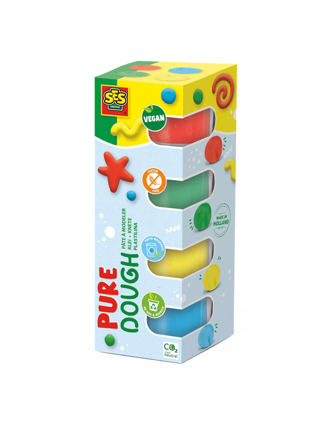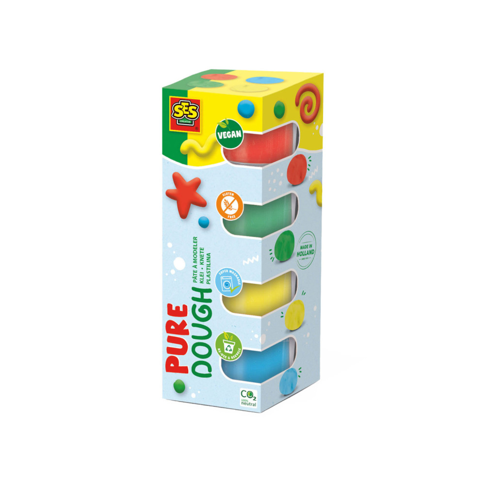 Feel good klei! Dé klei van SES in vier vrolijke varianten. Klei die je een goed gevoel geeft! Deze klei is 100% vegan, glutenvrij en goed uitwasbaar. De klei is helder en zacht. En de hersluitbare verpakking zorgt ervoor dat de klei heel lang goed blijft. Klaar met de klei? Scan dan de QR code op de verpakking en ontdek wat je allemaal nog kunt doen met de verpakking!