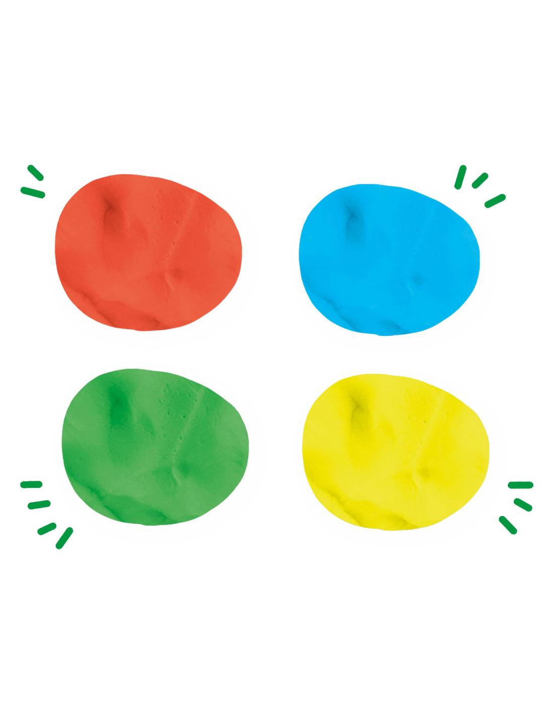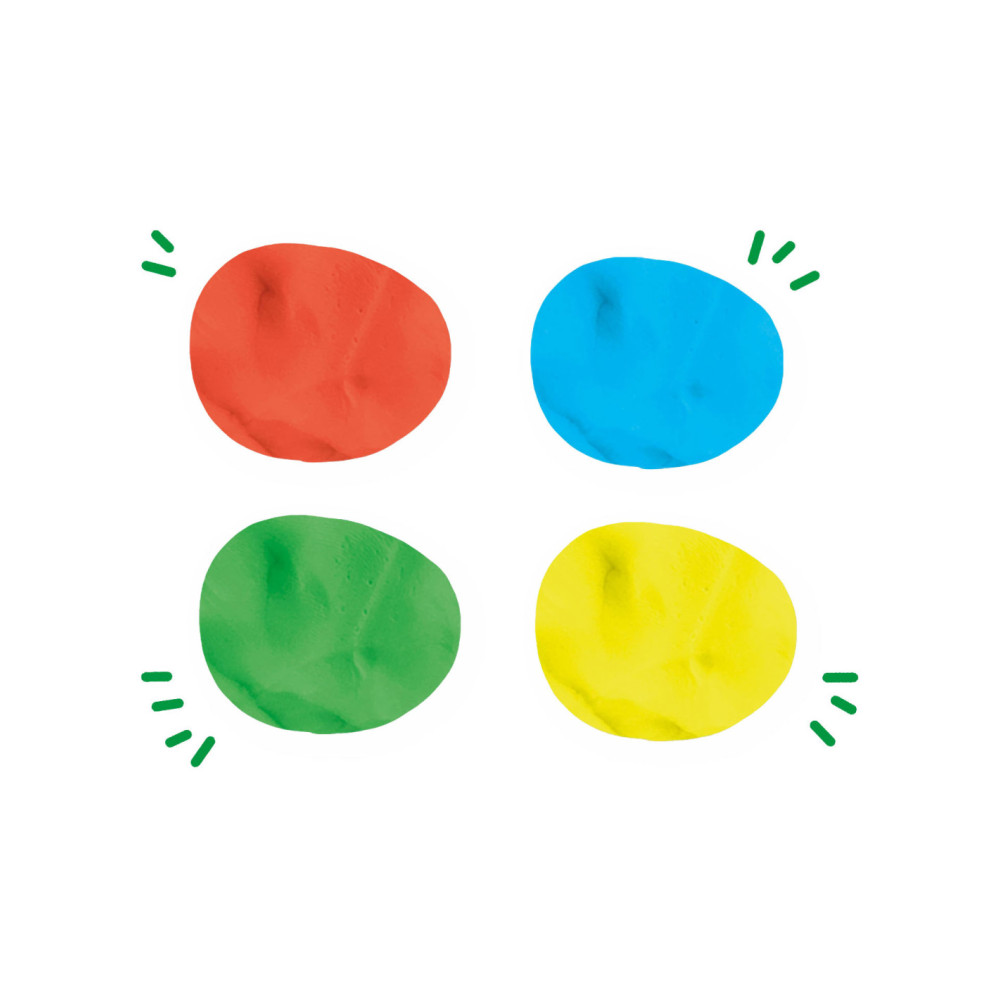 De Feel good Pure klei bestaat uit de pure kleuren groen, geel, lichtblauw en rood.