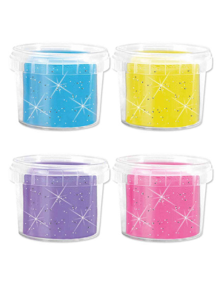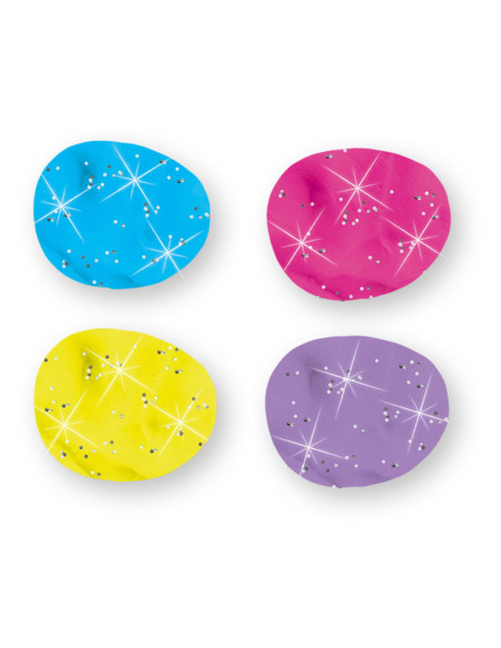 Feel good klei - Sparkle! Alle eigenschappen van de klei die je een goed gevoel geven zijn op deze verpakking meteen duidelijk. De klei is compleet vegan, glutenvrij en goed uitwasbaar. De klei is helder, zacht en lang bruikbaar door de hersluitbare verpakking die eenvoudig voor andere doeleinden kan worden hergebruikt. Meer achtergrondinformatie en tips voor hergebruik van de handige potjes kan via het scannen van de QR-code op de verpakking worden gelezen. De Feel good klei - Sparkle bestaat uit de heldere kleuren glitter roze, glitter lila, glitter neon geel en glitter lichtblauw.