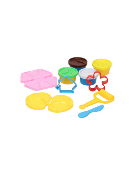 Met deze kleiset maak je als kleine chef je eigen luxe ontbijtje. De kleiset bevat vier verschillende potjes gekleurde klei waarmee je het ontbijt kunt maken. De set bevat de volgende accessoires: een vormpje voor een sandwich, een vormpje voor een gebakken ei, een roller, een mesje en twee vormpjes met een bloem en een huis. De accessoires zijn gemaakt van kunststof. De kleuren kunnen afwijken van het plaatje op de doos. Geschikt vanaf drie jaar.