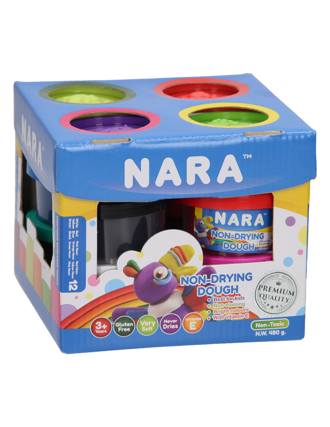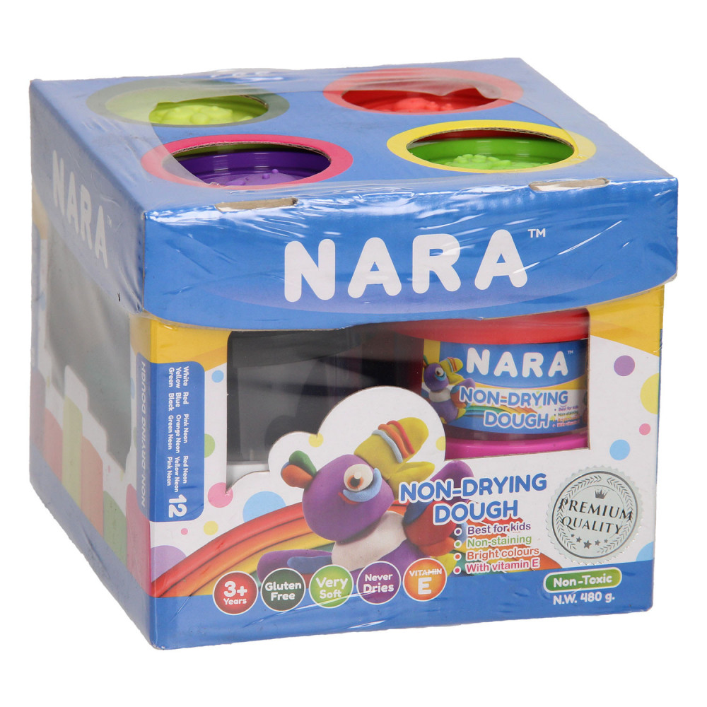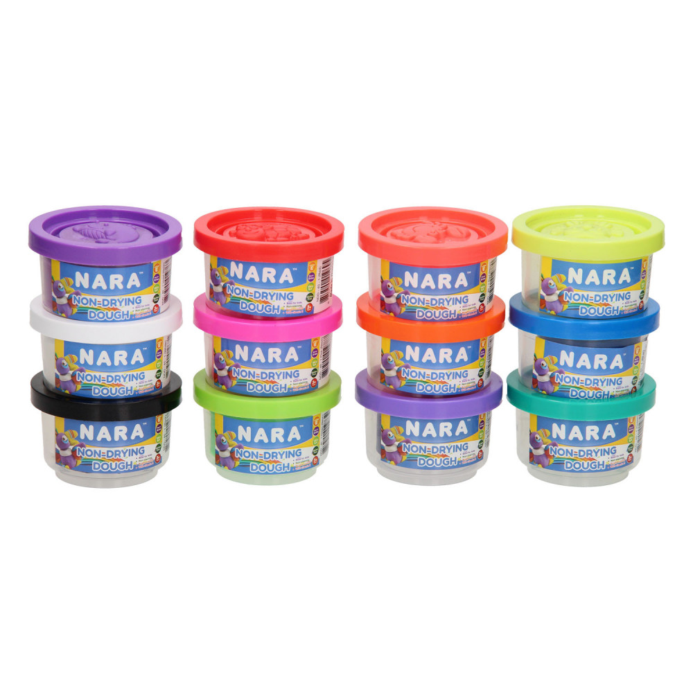 Klei Set met 12 potjes van 40 gram klei in verschillende kleuren.