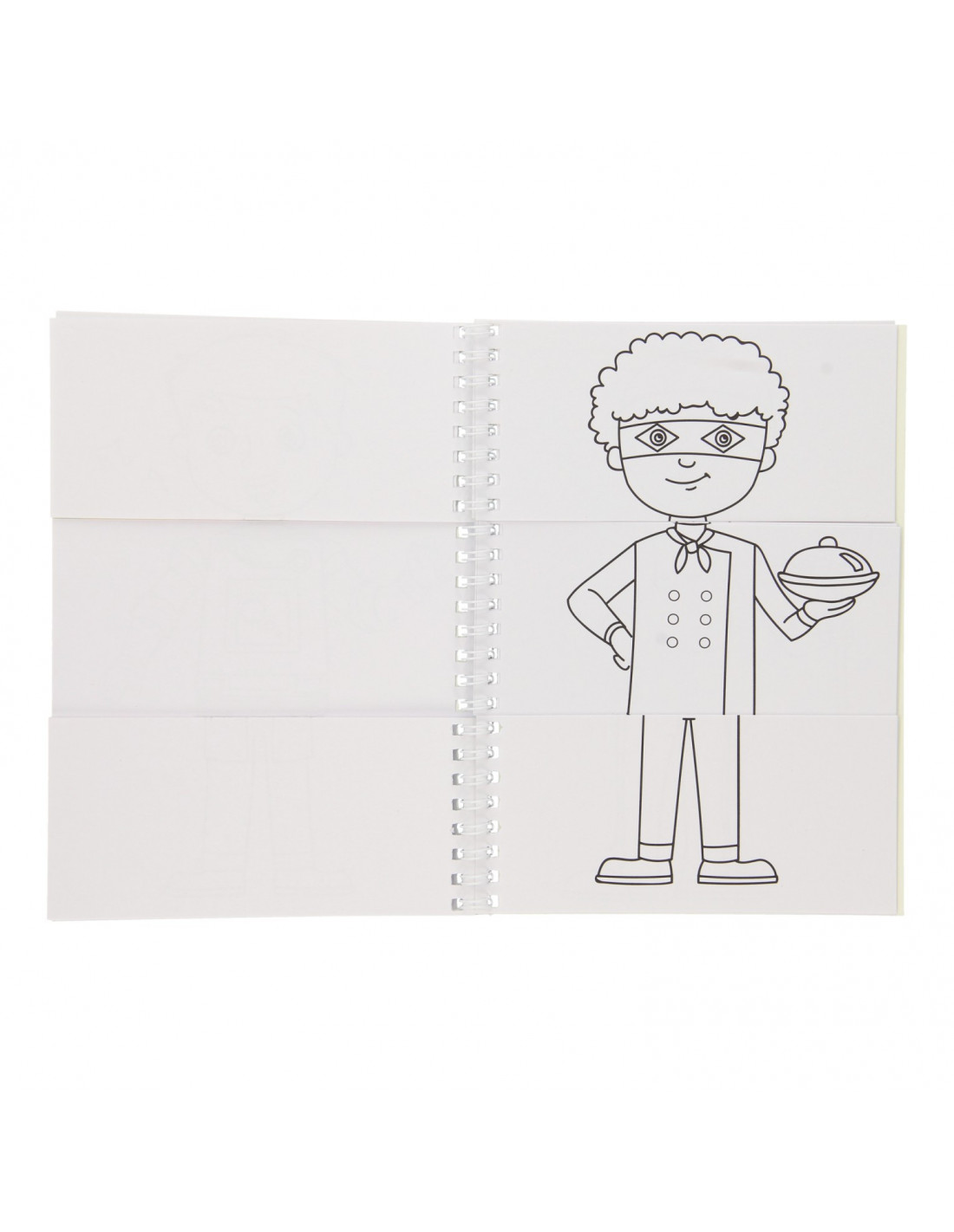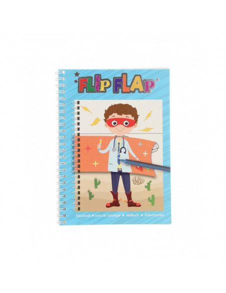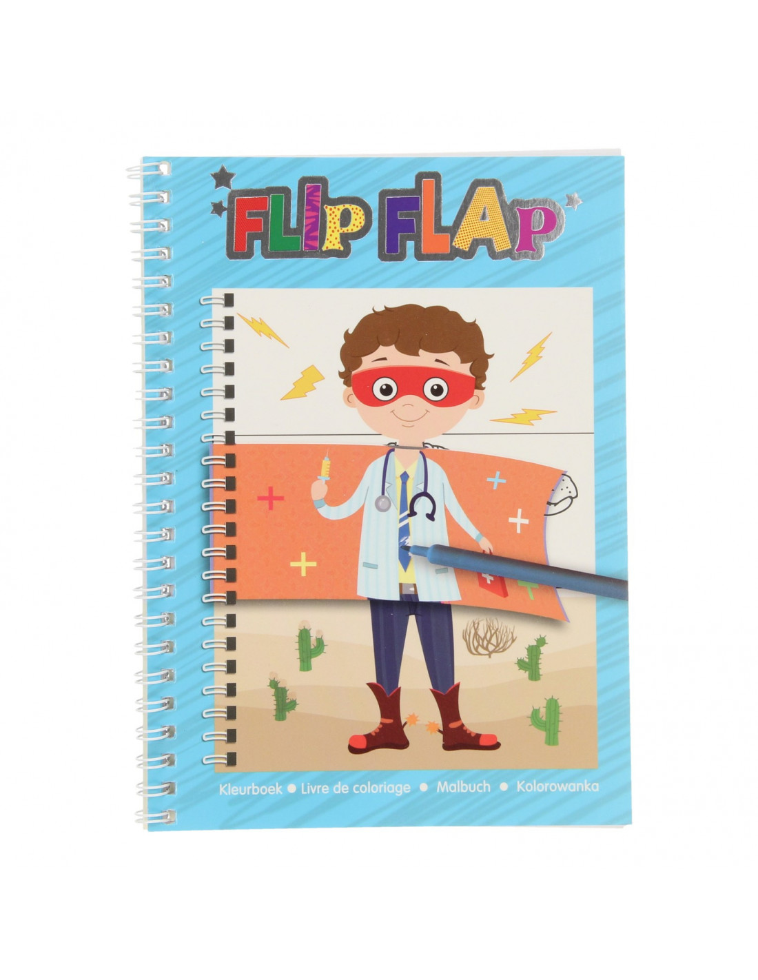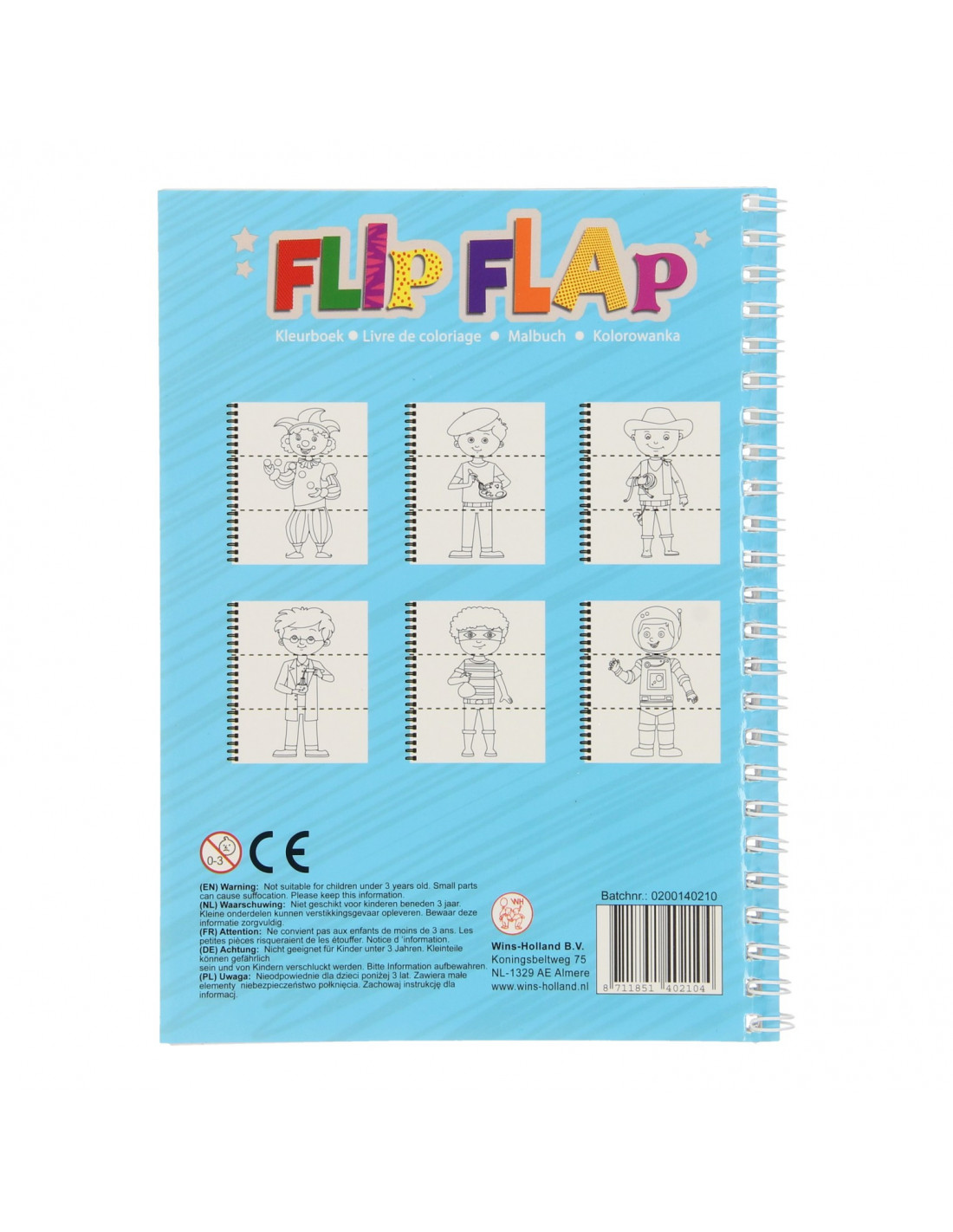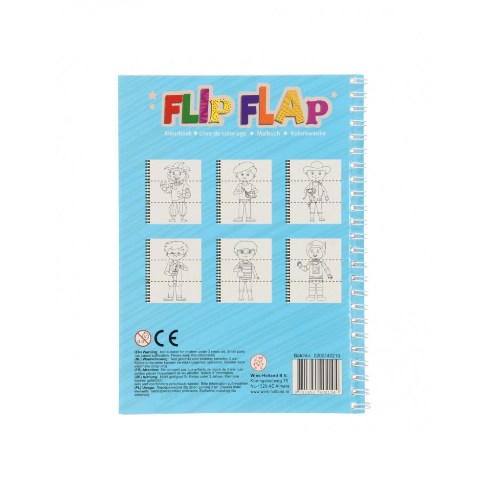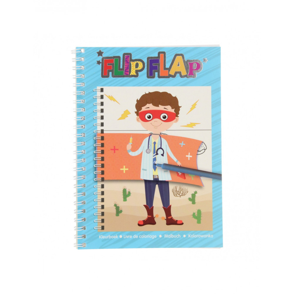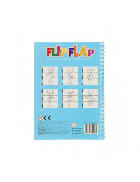 Flip flap kleurboek met blauwe kaft en kleurplaten van jongen. Afmeting: 20 bij 15 cm. Geschikt voor kinderen van 3 tot 6 jaar oud.