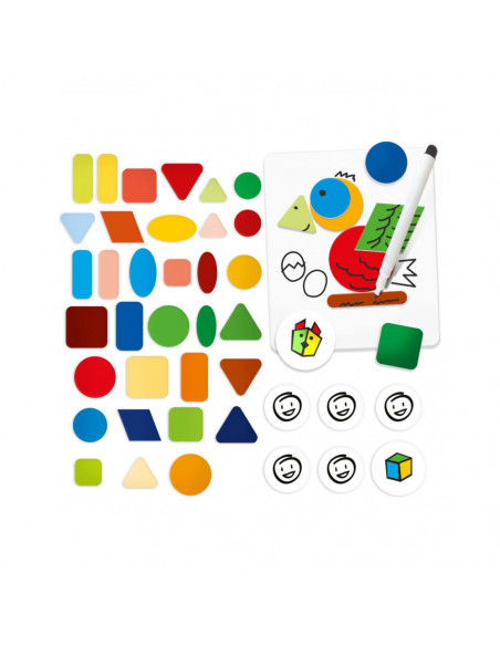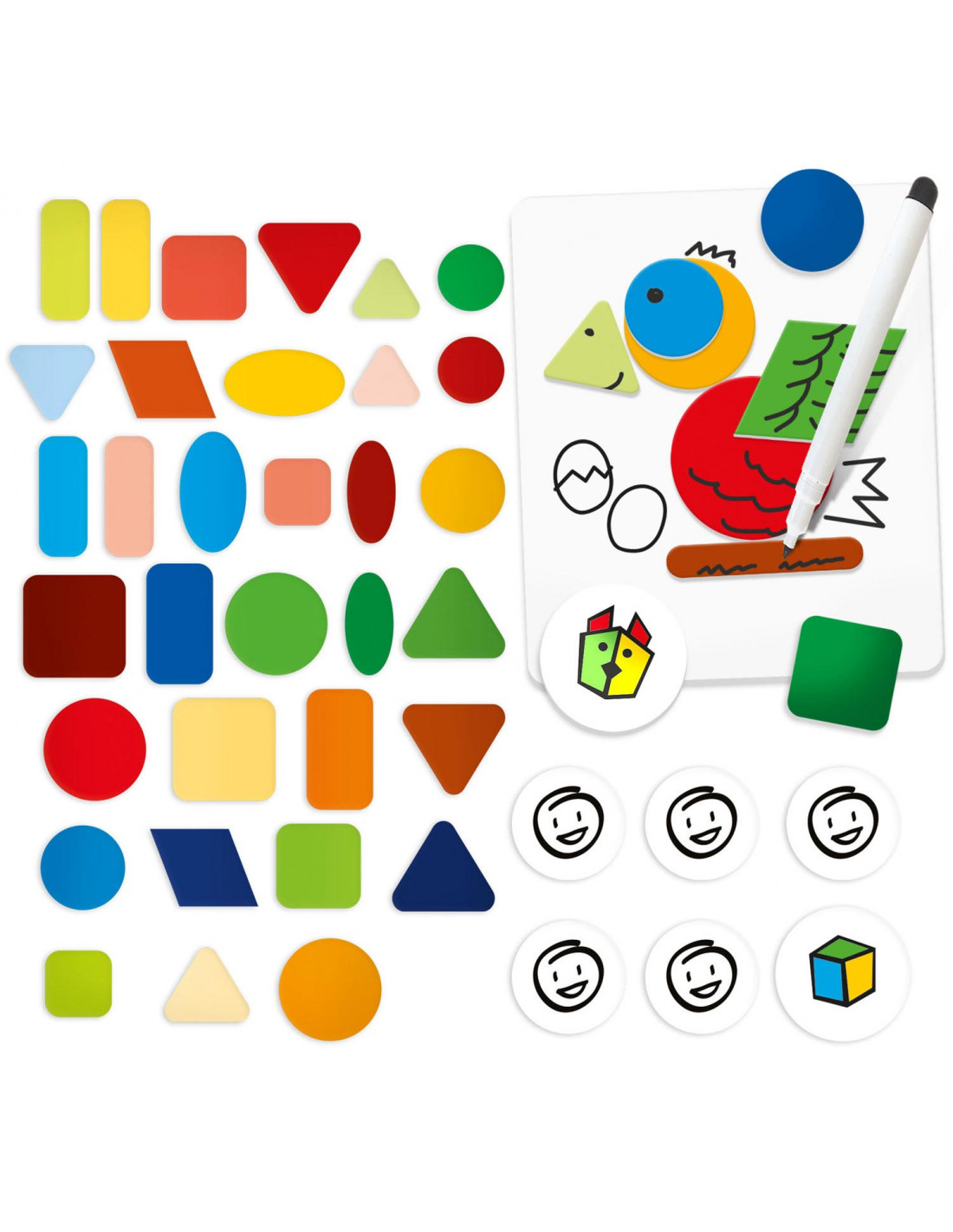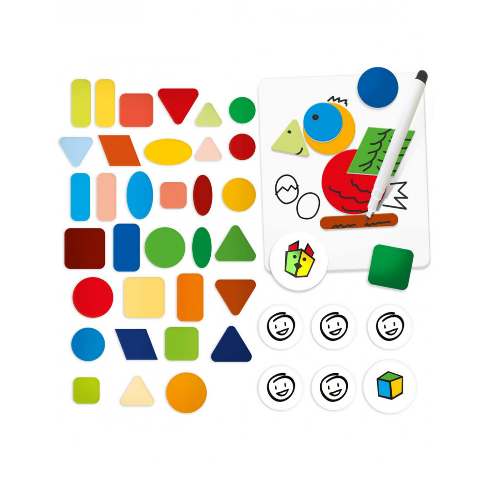 Dit leuke en originele game stimuleert en traint de creatieve denkprocessen van jonge kinderen. Wist je dat je de snavel van een kip van een driehoek en een tekhshund's lichaam van een rechthoek kunt maken? Inhoud: 2 teken en veegborden, categoriekaarten, creatieve kit en een magische viltstift.
