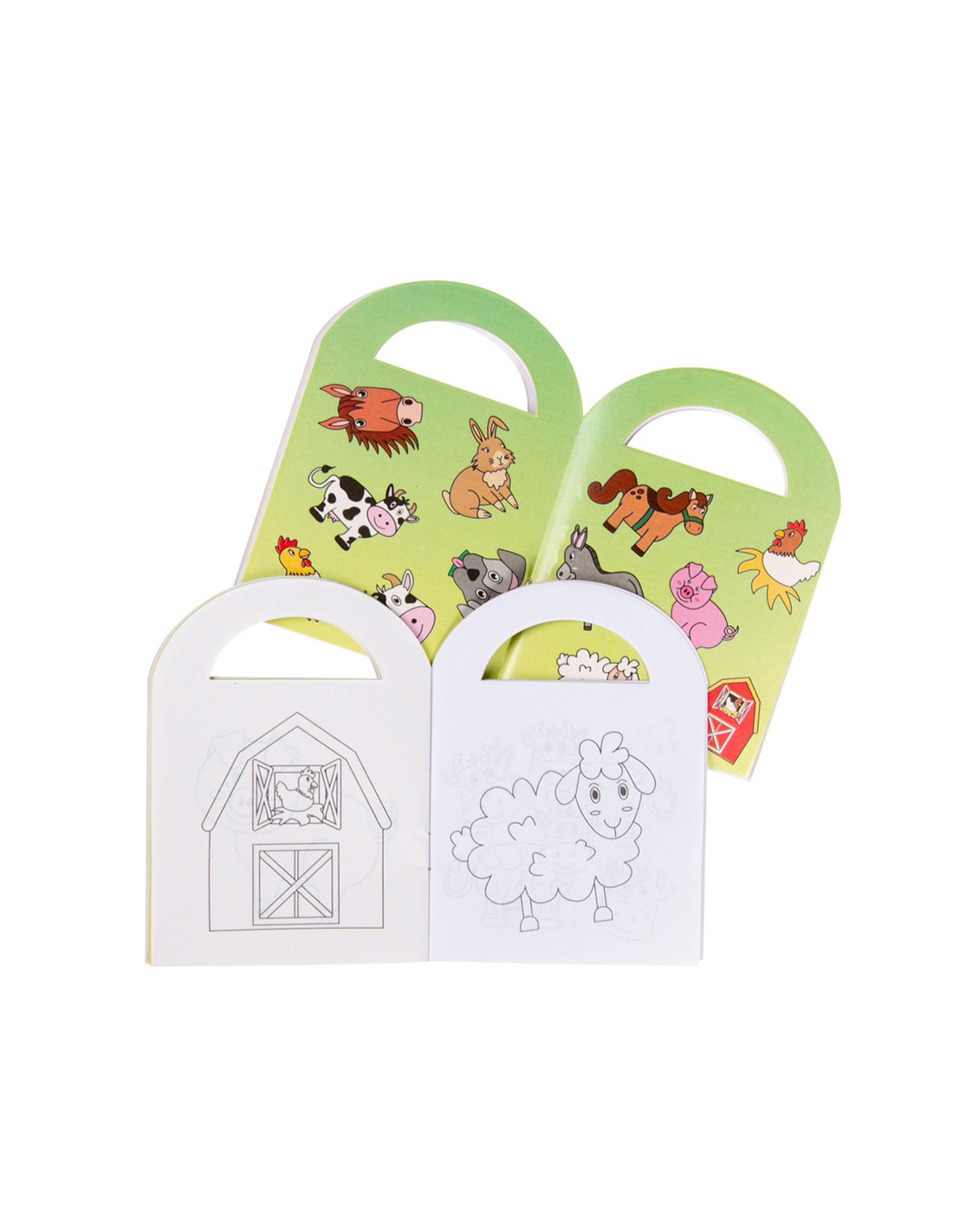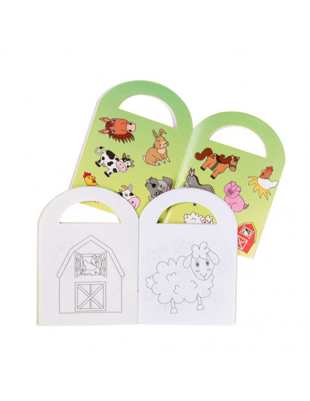 Kleurboekje met verschillende kleurplaten met als thema boerderijdieren inclusief stickers.