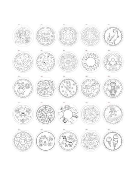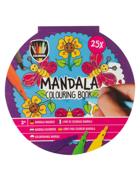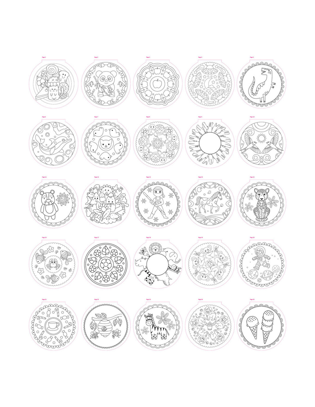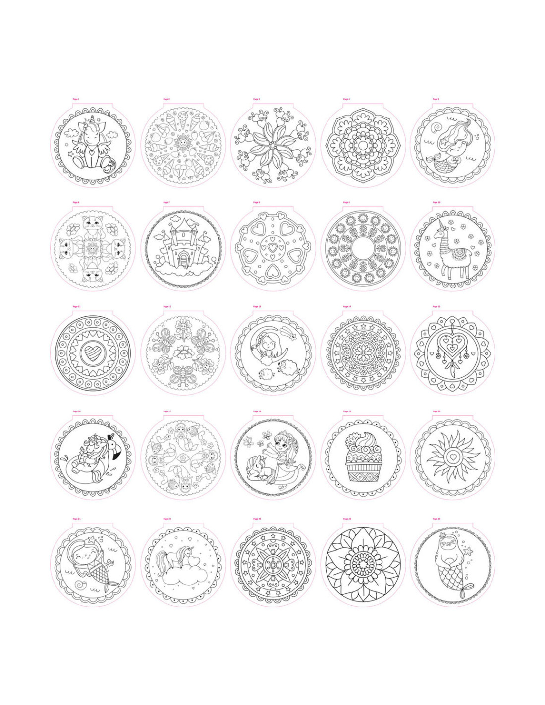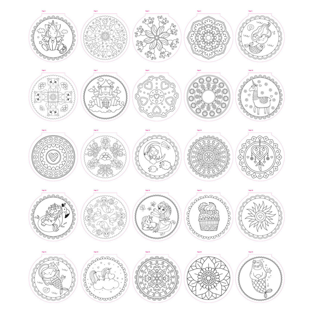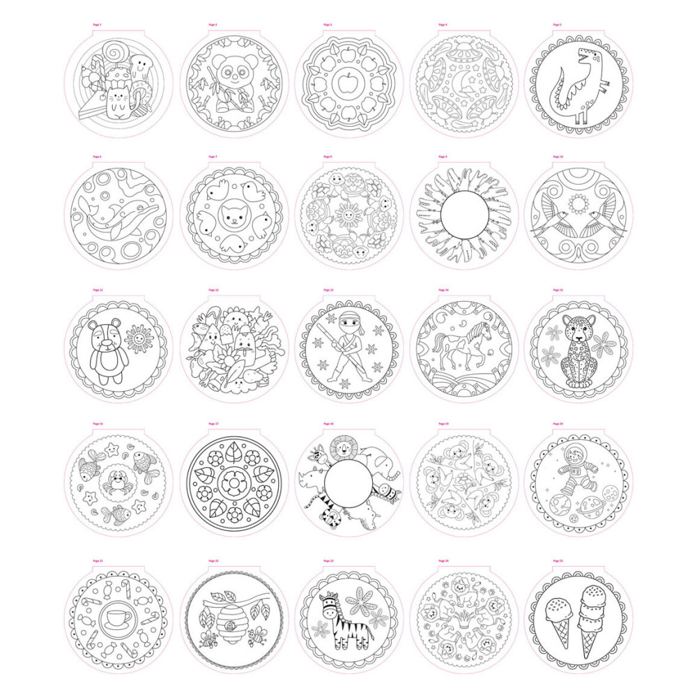 Rond kleurboek met 25 vellen mandala's om in te kleuren. Het kleurboek is 15 centimeter groot en verkrijgbaar in variant unicorn en dieren. Geschikt vanaf 3 jaar.