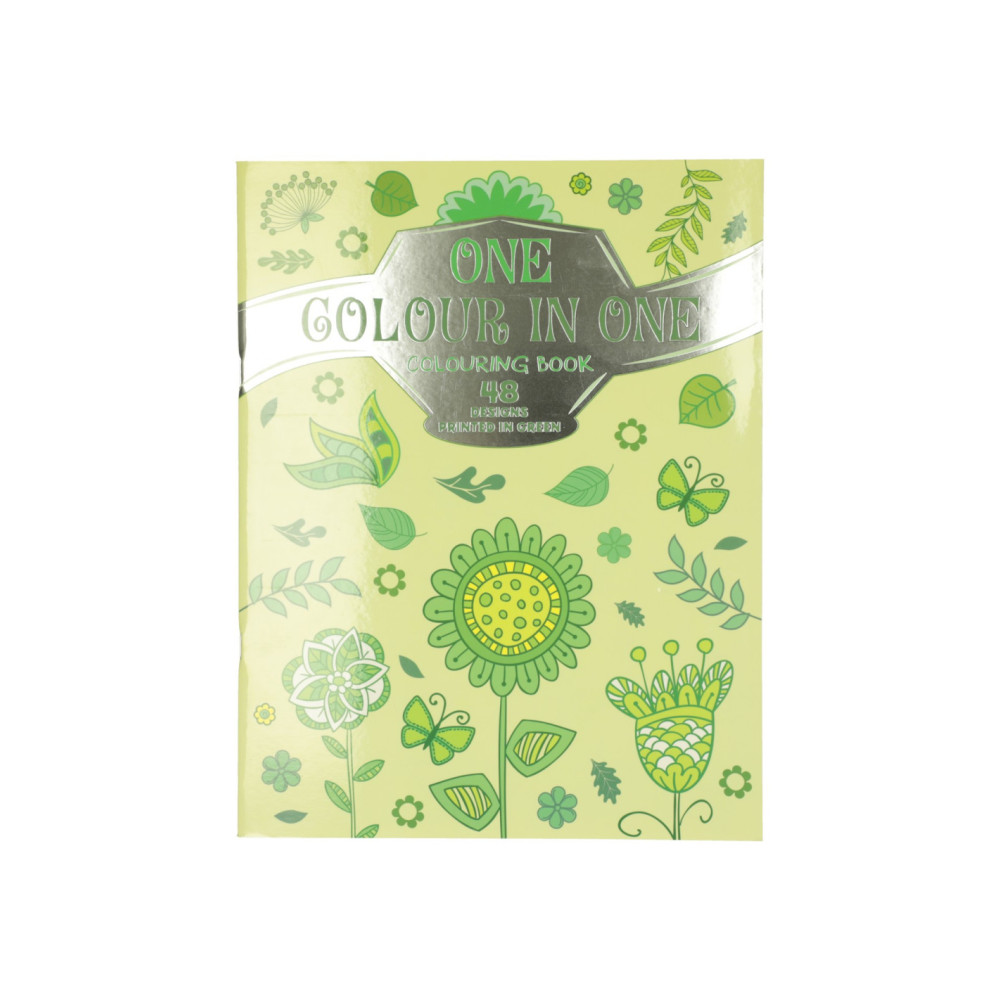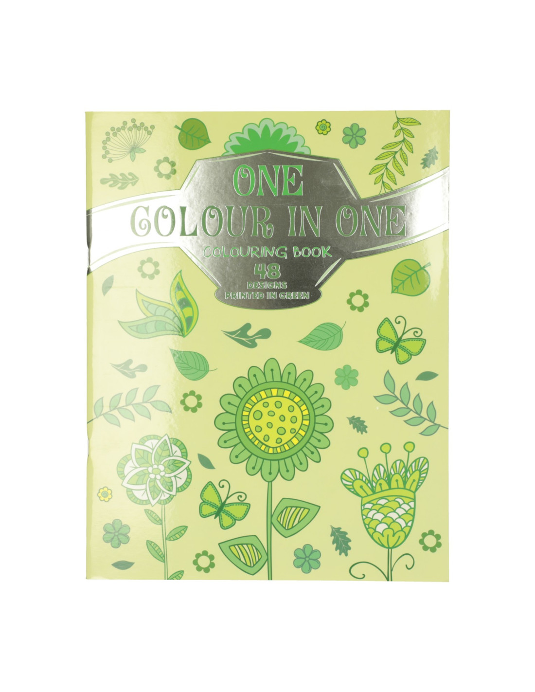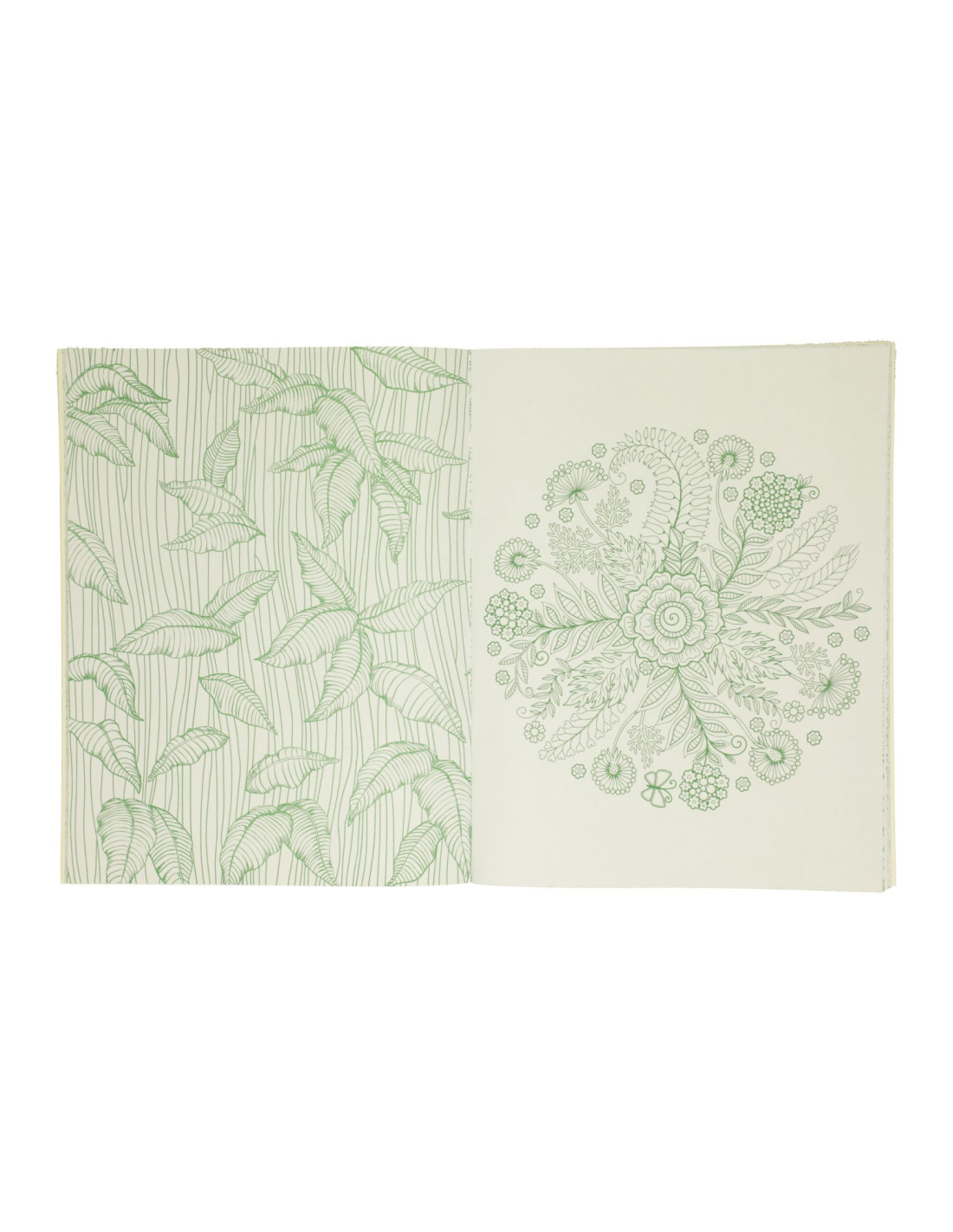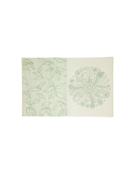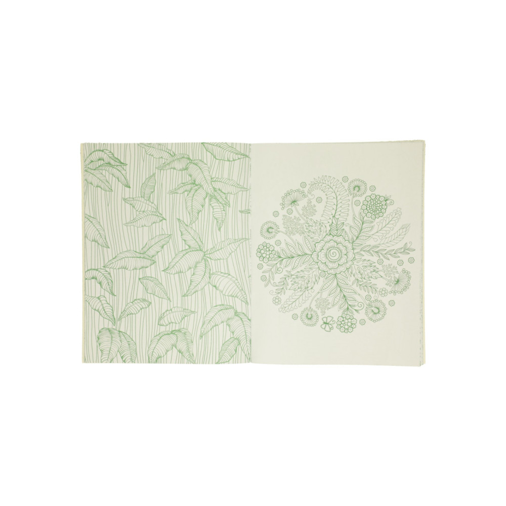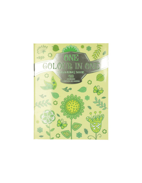 Kleurboek met kleurplaten gedrukt in groene inkt. In het kleurboek zitten 48 kleurplaten met plantenthema. Het formaat van het boek is 21,5 x 27,7 cm.