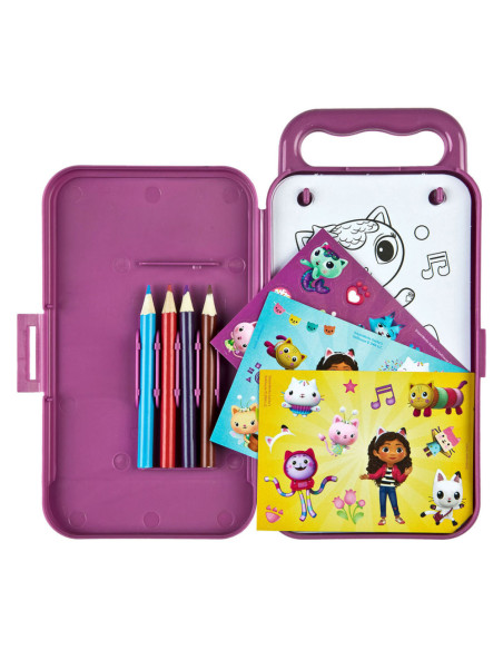 Alle Gabby's Dollhouse fans, opgelet! Met deze knutselset kan je naar hartelust je favoriete Gabby's Poppenhuis karakters inkleuren. Met 20 kleursjablonen (formaat: 9,4 bij 17 cm) kan je naar hartenlust kleuren. In het handige meeneemdoosje zitten ook 3 papieren stickervellen en 4 minikleurpotloden. Geschikt voor kinderen vanaf 3 jaar oud.