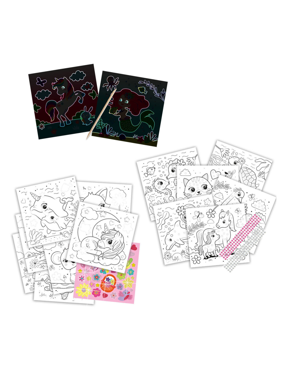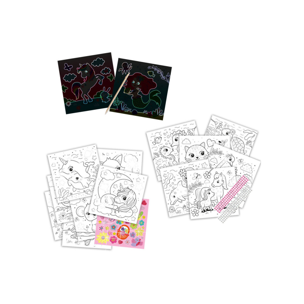 Dit glitterende activiteiten- en kleurboek is dé manier voor urenlang vermaak. Naast kleuren kan er gescratched worden, zijn er diamond painting parels en glitter stickers zorgen voor glitterende resultaten wanneer de kleurplaten klaar zijn!