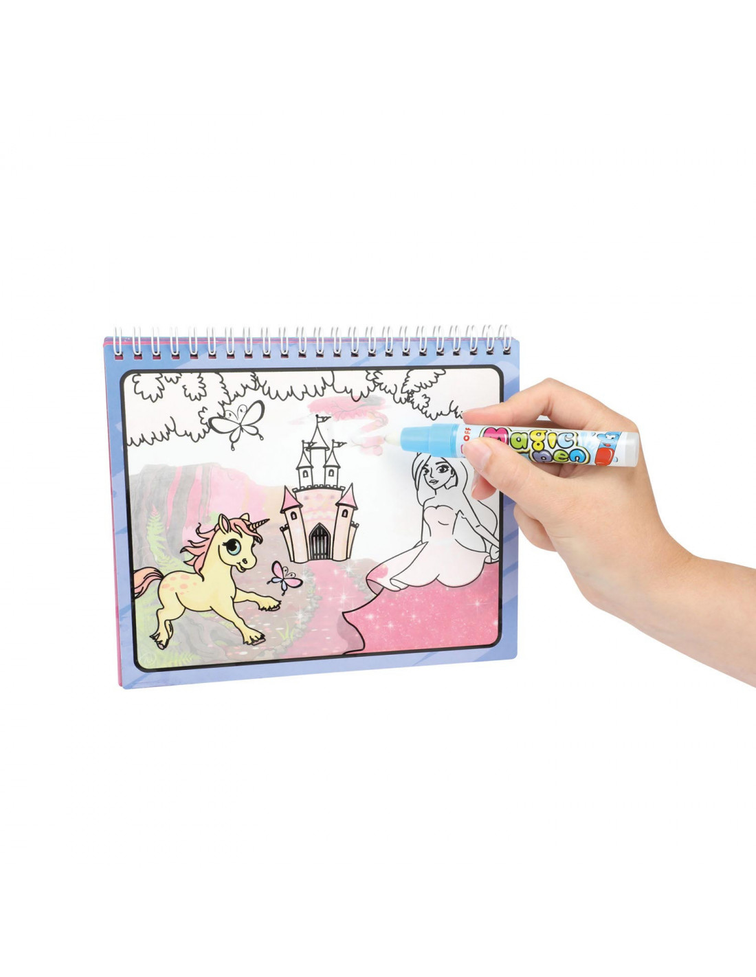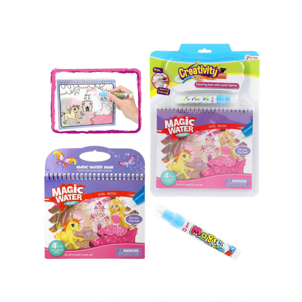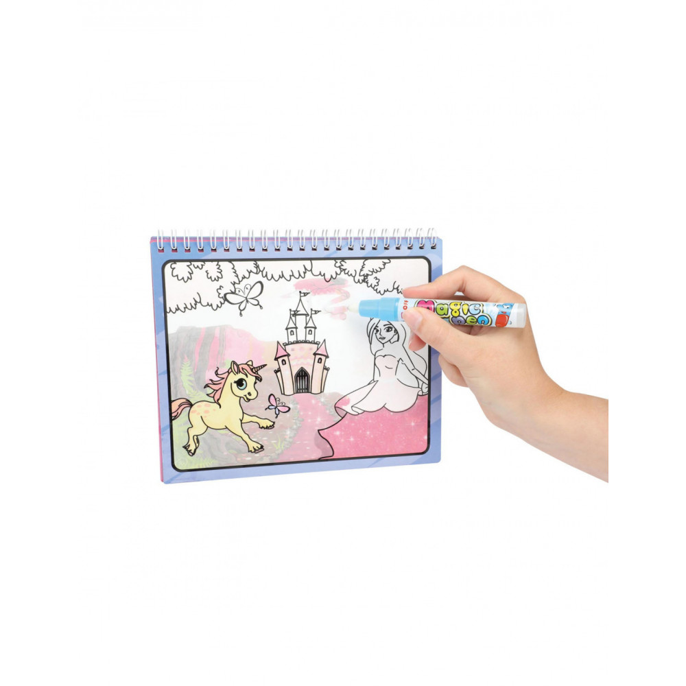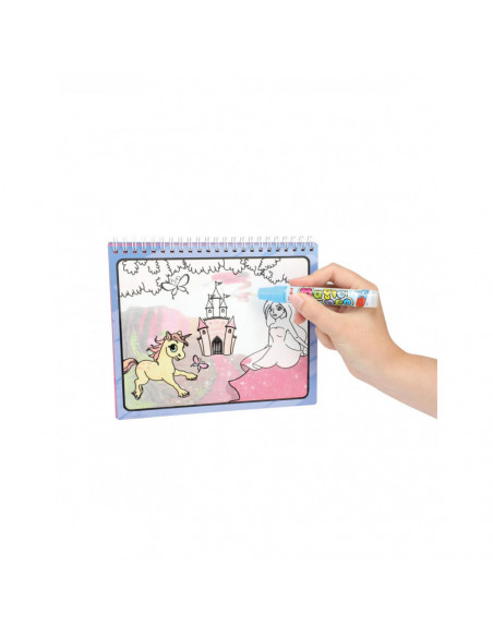 Vul de stift met water en kies een mooie afbeelding in het kleurboek. Ga met de punt over het plaatje op de bladzijde en tover de mooiste kleuren tevoorschijn. Laat je verrassen door de magie waarop elke prinses prachtig wordt. Als de 'inkt' is opgedroogd wordt alles weer wit. Dus je kunt oneindig vaak toveren...