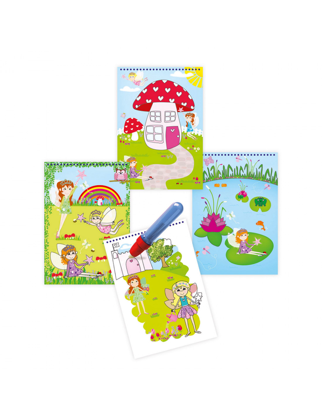 Vul de pen met water en ontdek welke kleuren de tekening heeft. Wanneer je met de pen over de tekening gaat komen de kleuren één voor één tevoorschijn. In het kleurboek zitten zes tekeningen. Het kleurboek kan eindeloos gebruikt worden want zodra het water opgedroogd is verdwijnt de tekening!