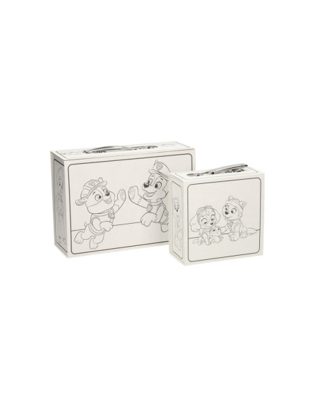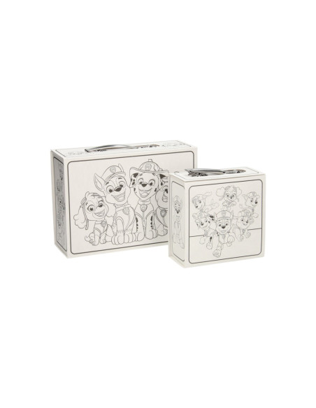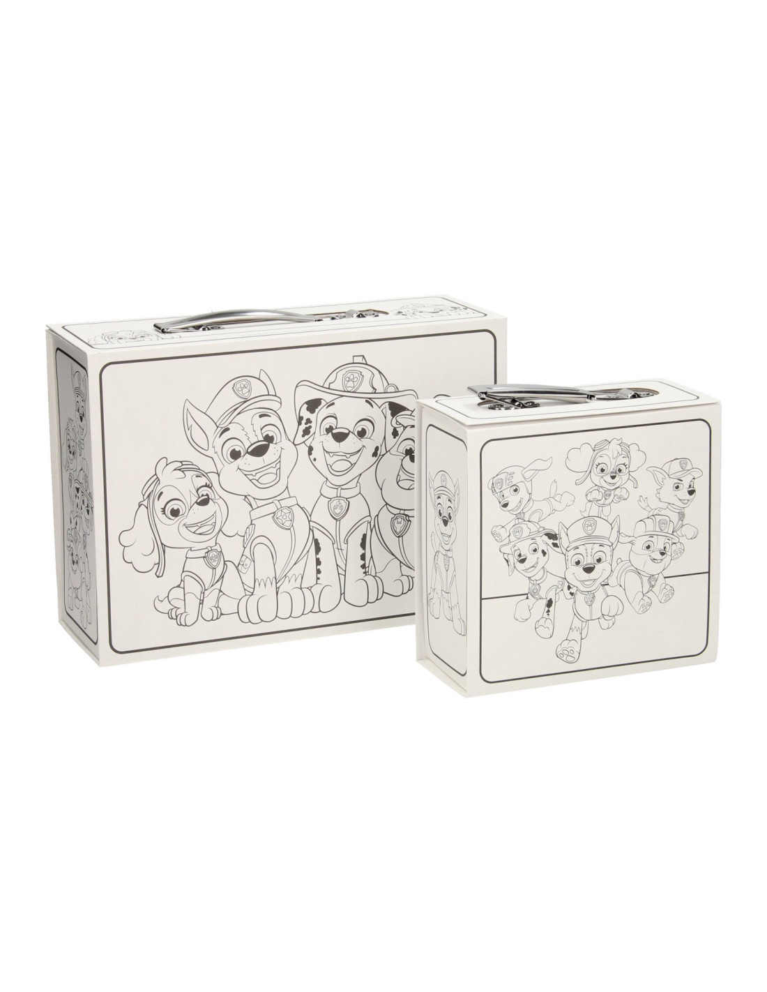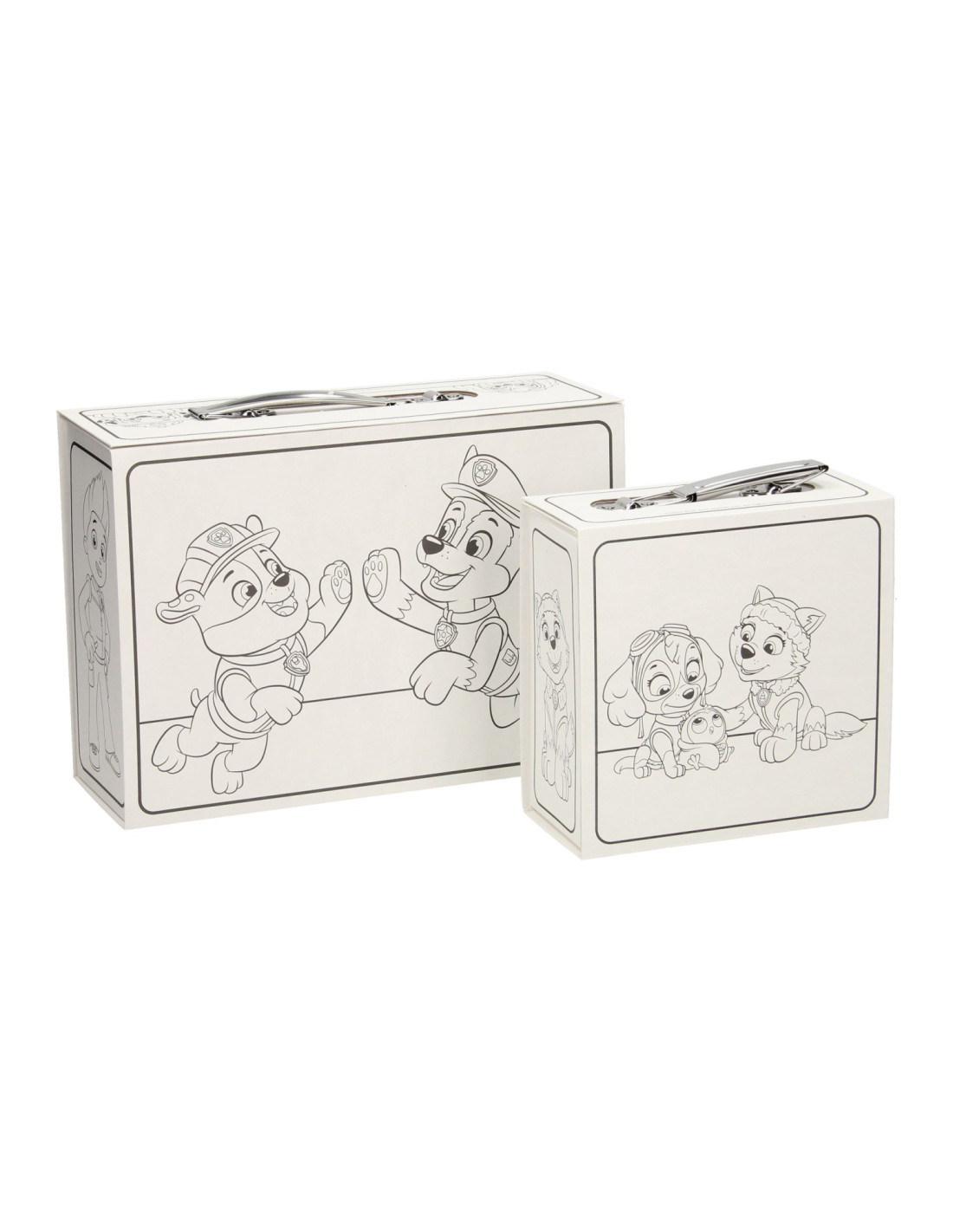 Knutselset voor het inkleuren en in elkaar zetten van 2 kartonnen PAW Patrol koffers (15x15x17 cm en 25x18x9 centimeter). Geschikt voor kinderen vanaf 3 jaar oud.