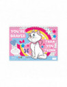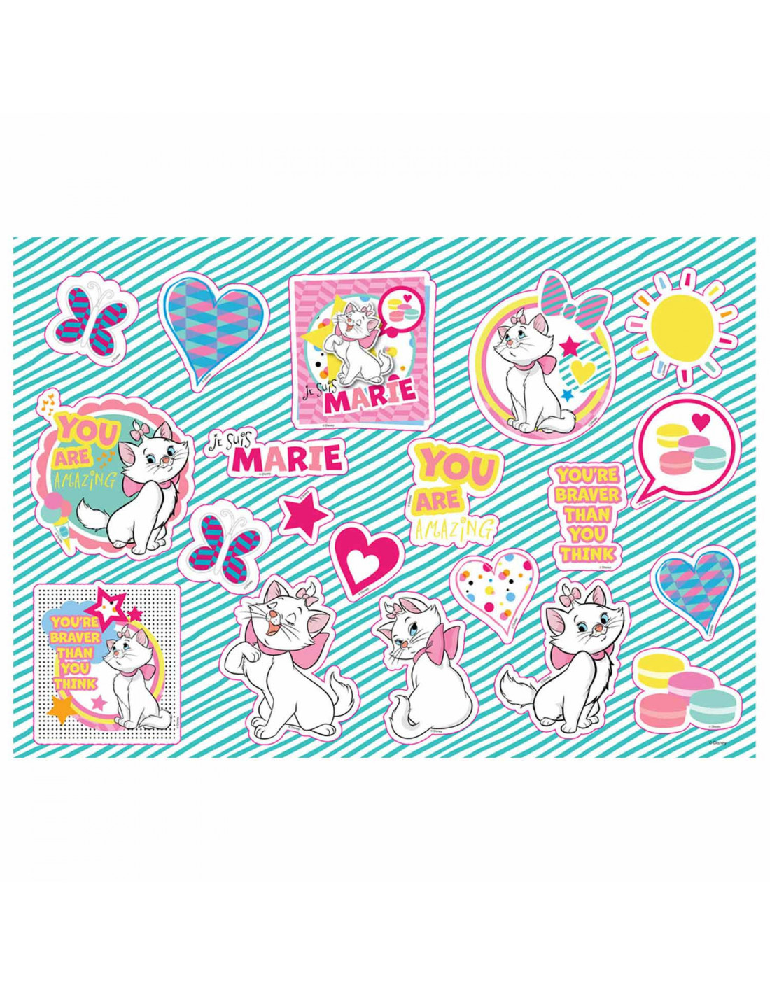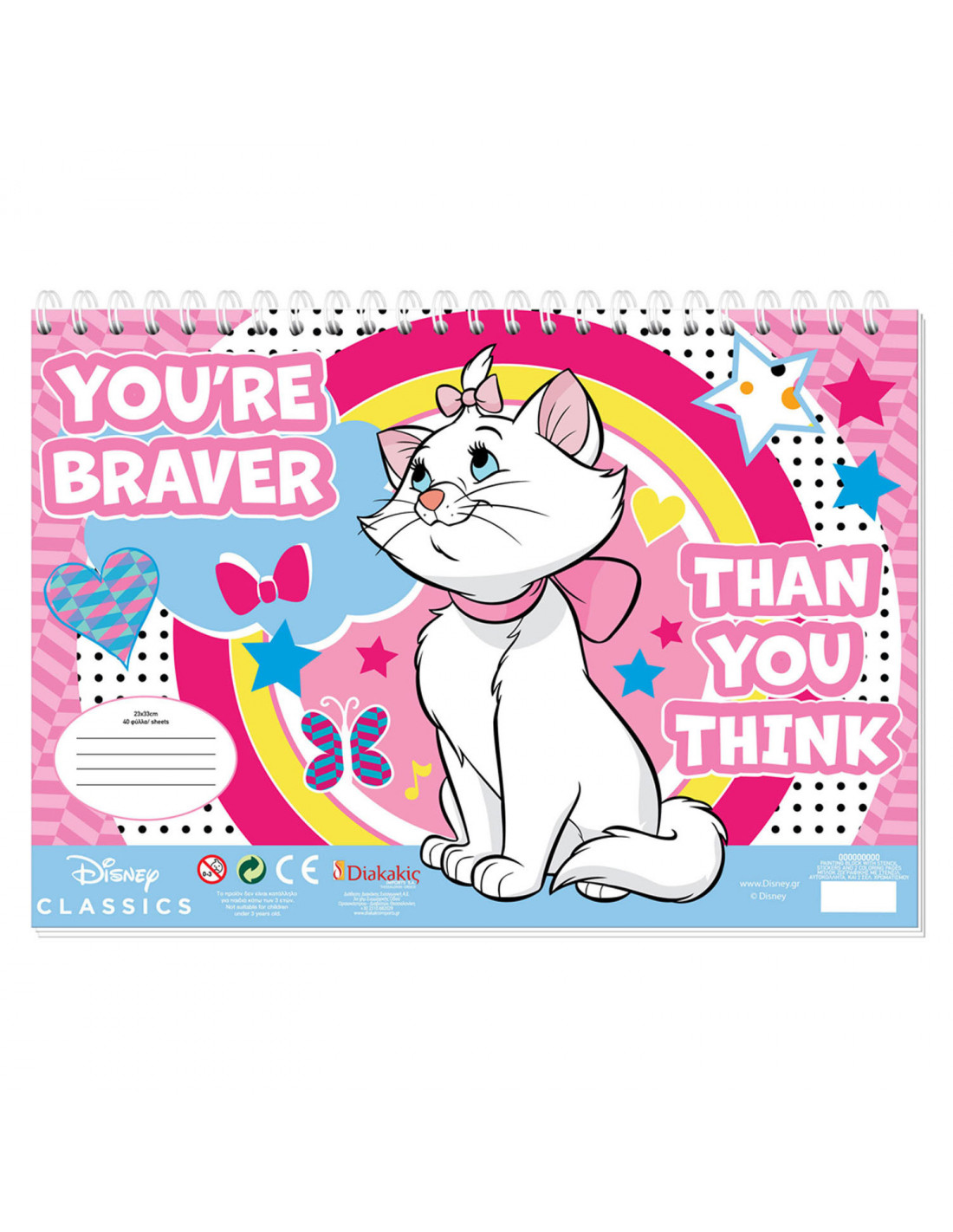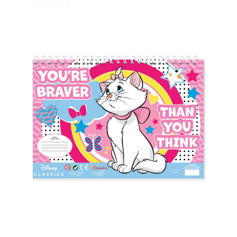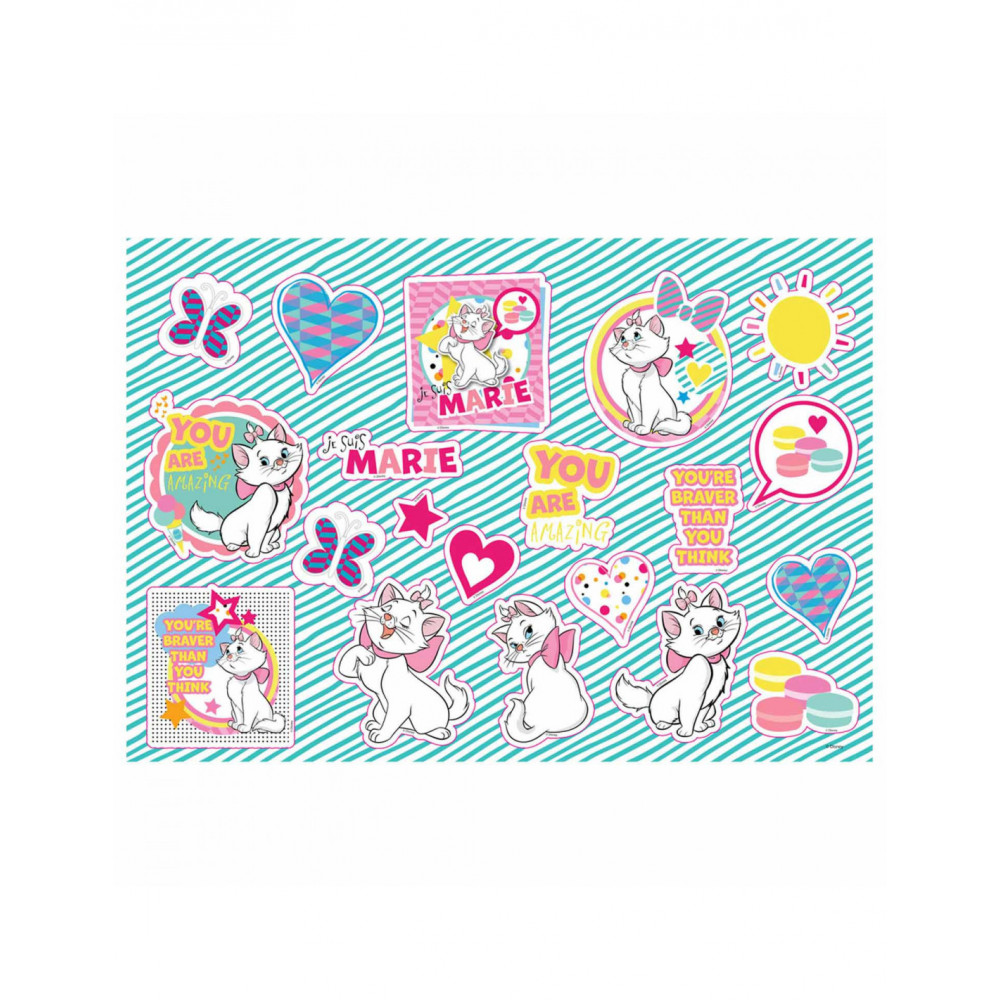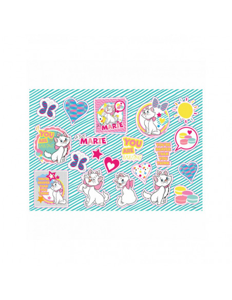 Schilder of kleur deze tekeningen van Marie Cat. Plak de verschillende stickers op de tekeningen. Aan de buitenkant van het schetsblok zit een liniaal van 30 centimeter lang, en uitsparingen in verschillende vormen, zoals een hartje, boom en vierkant, die je na kunt trekken met een stift of potlood. Het schetsboek is 33 bij 23 centimeter. Inclusief stickers en liniaal.
