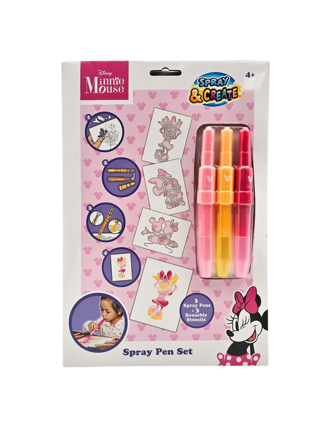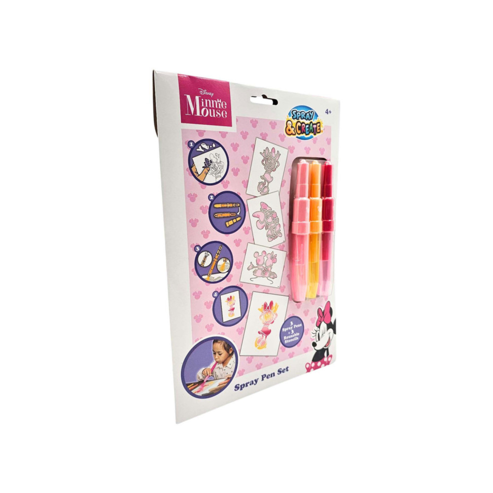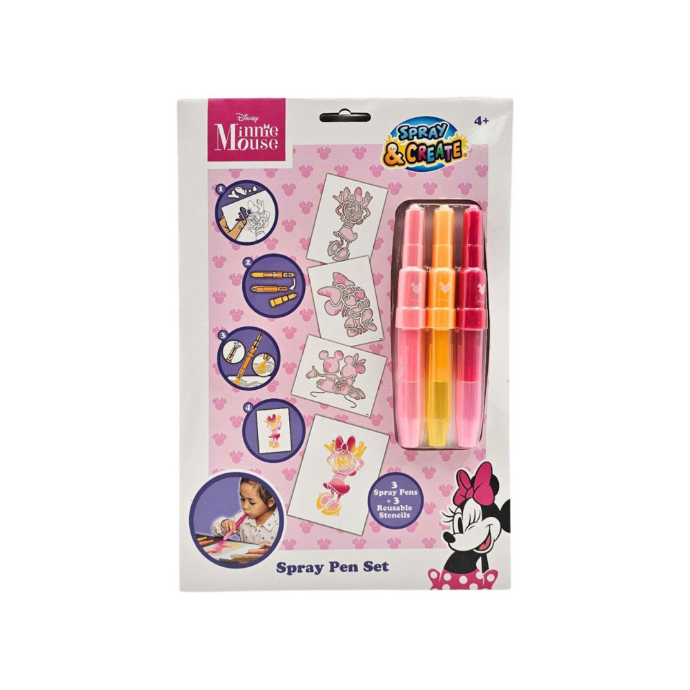 Minnie Mouse blaaspennen set. Geschikt voor kinderen vanaf 4 jaar. De set komt met 3 blaaspennen en 3 herbruikbare sjablonen.