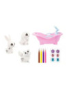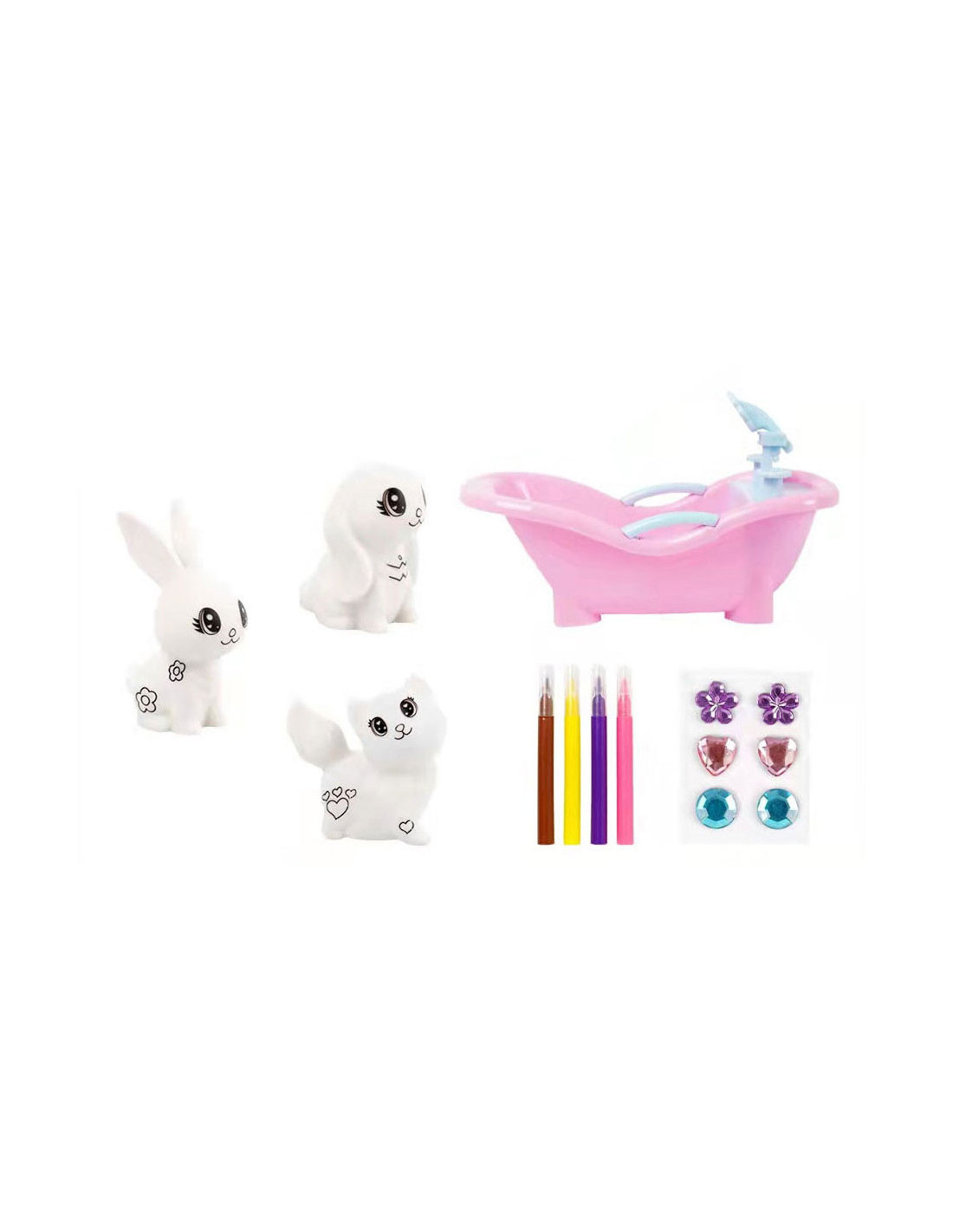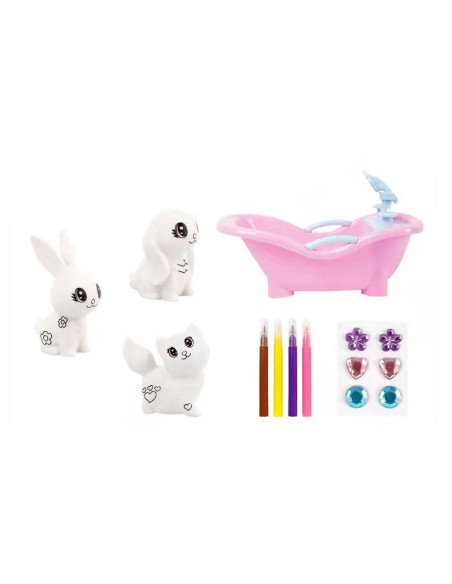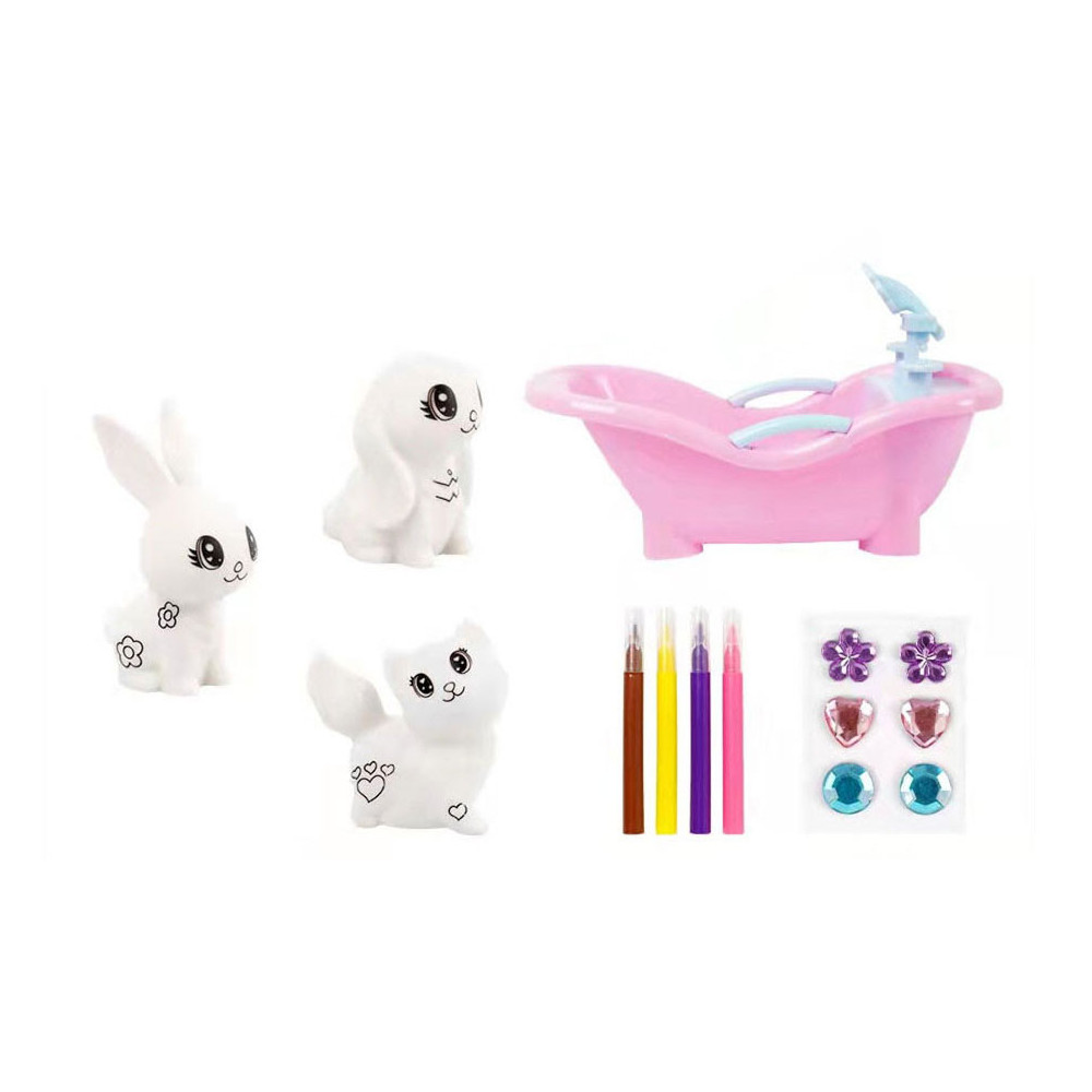 Deze 3 superschattige diertjes worden nog leuker als jij ze een mooi kleurtje geeft! In deze speelset zitten 3 dieren, 4 speciale vilstiften en een setje diamantstickertjes om de dieren te versieren. Ook zit er een dierenbadje bij. Ben je het kleurtje zat? Zet je diertje dan in bad en was de kleur er zo weer vanaf. Dan kun je weer opnieuw beginnen!
