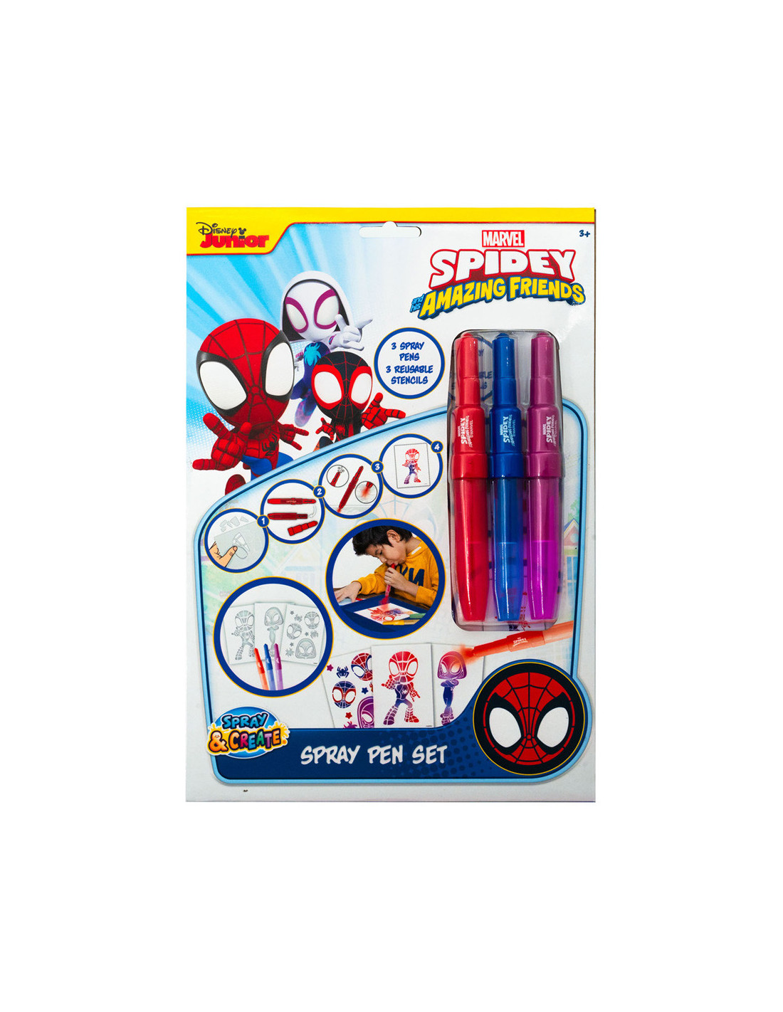 Blaaspennen set met 3 blaaspennen en 3 stencils met Spidey opdruk. Geschikt voor kinderen vanaf 3 jaar.