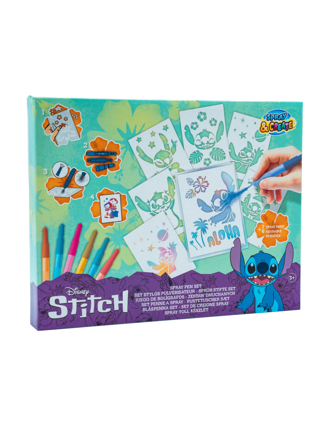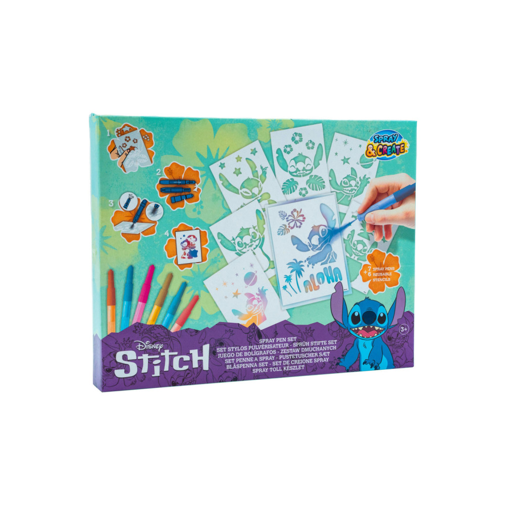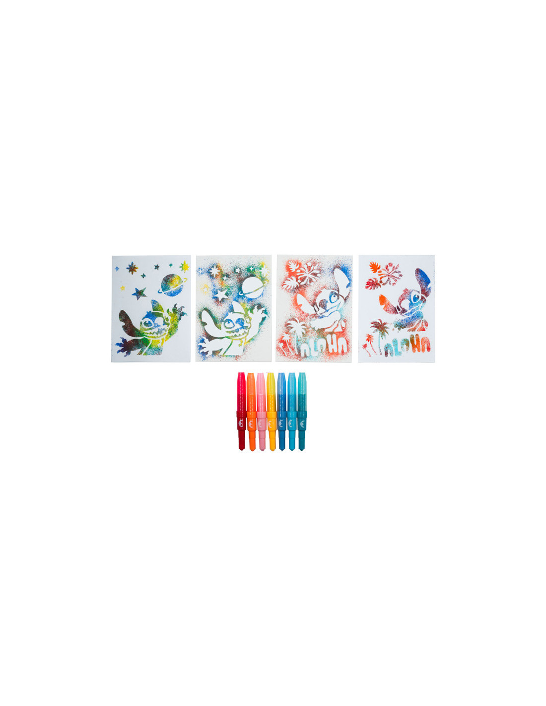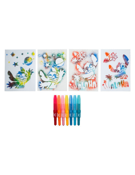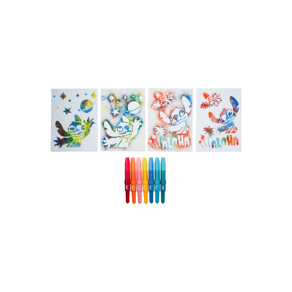 Stitch blaaspennen set met 7 blaaspennen in verschillende kleuren en 6 stencils. Geschikt voor kinderen vanaf 3 jaar.