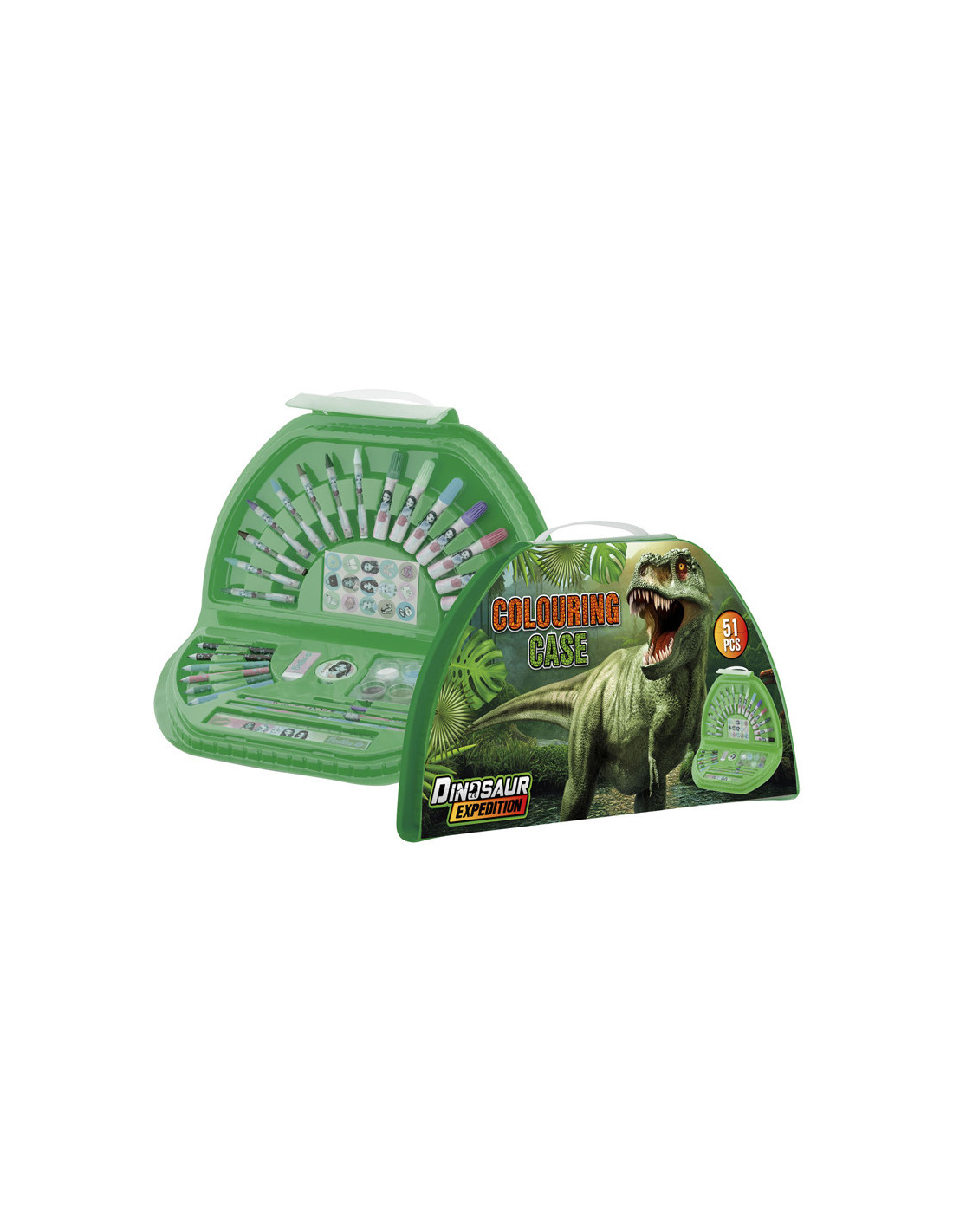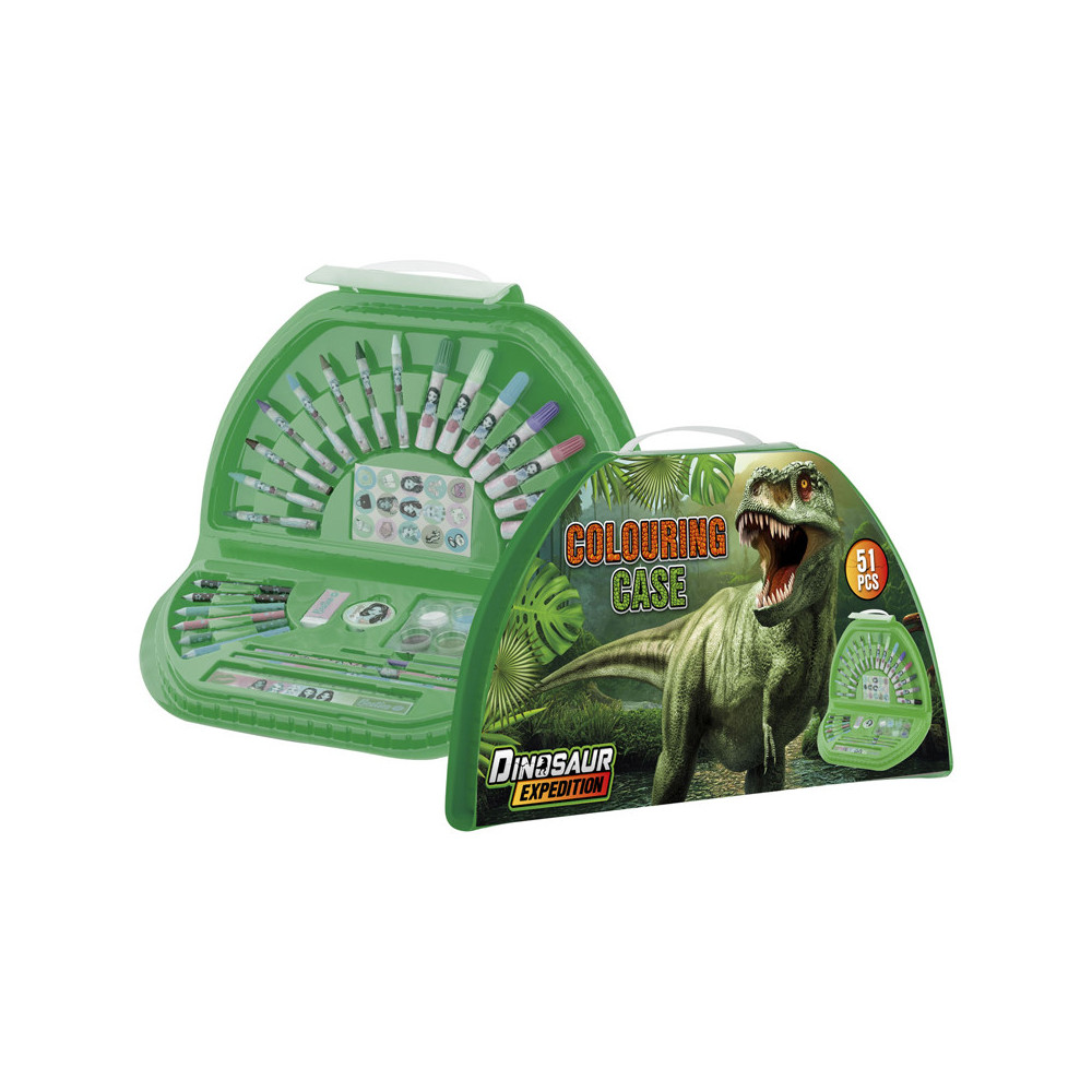 Kleurkoffer in dinosaurus thema met 51 stiften. Geschikt voor kinderen vanaf 3 jaar.