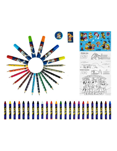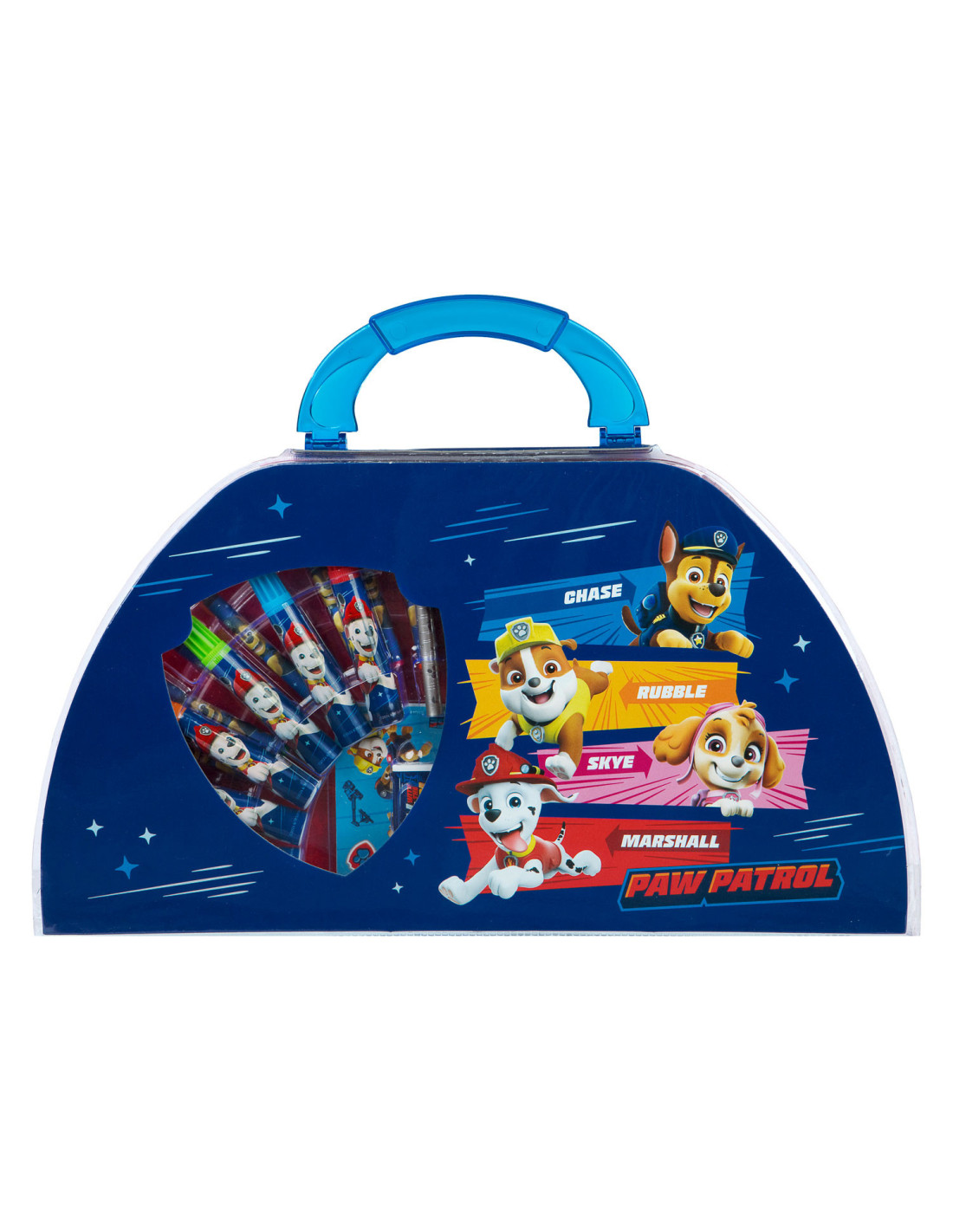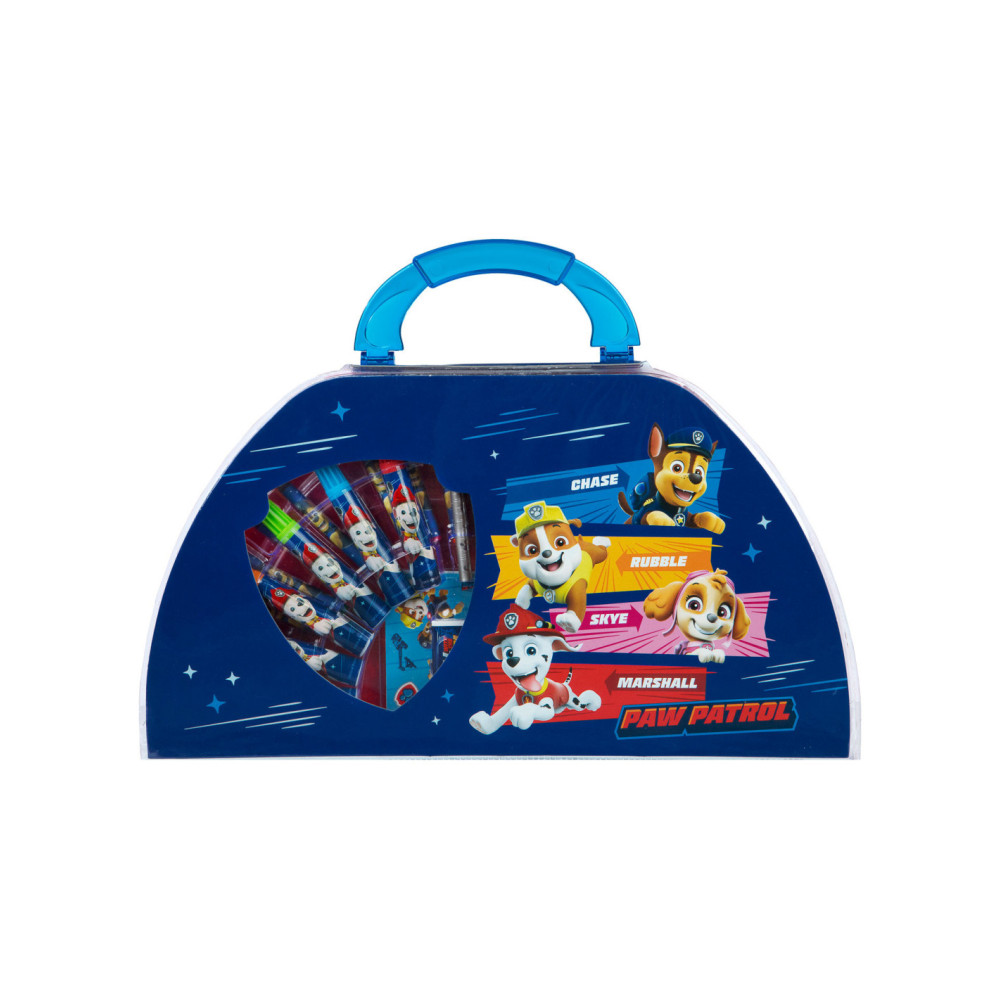 PAW Patrol kleurkoffer met 51 onderdelen, waaronder krijtjes, kleurpotloden, stiften, stickers en posters. De koffer heeft een praktisch draaghandvat en zorgt ervoor dat je kleurspullen altijd netjes bij elkaar blijven. Afmetingen: 38 x 22 x 4 cm. Geschikt voor kinderen vanaf 3 jaar.