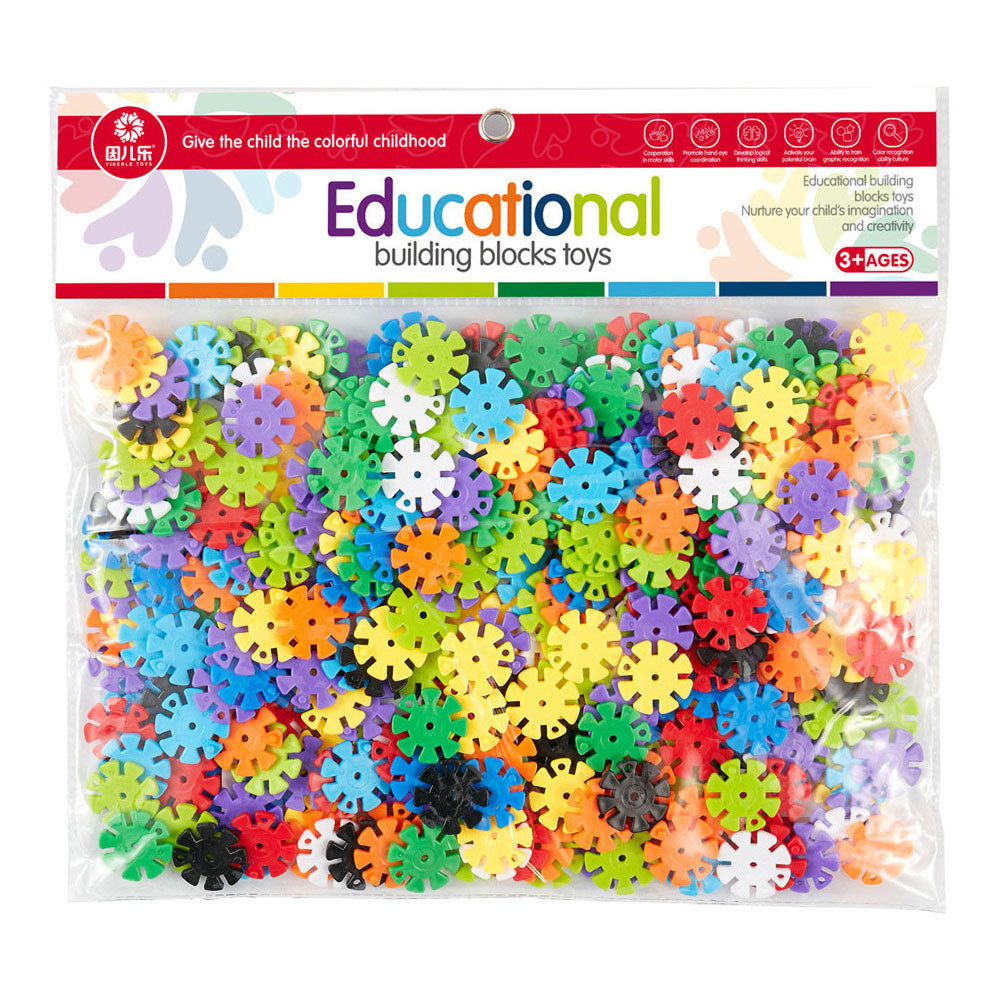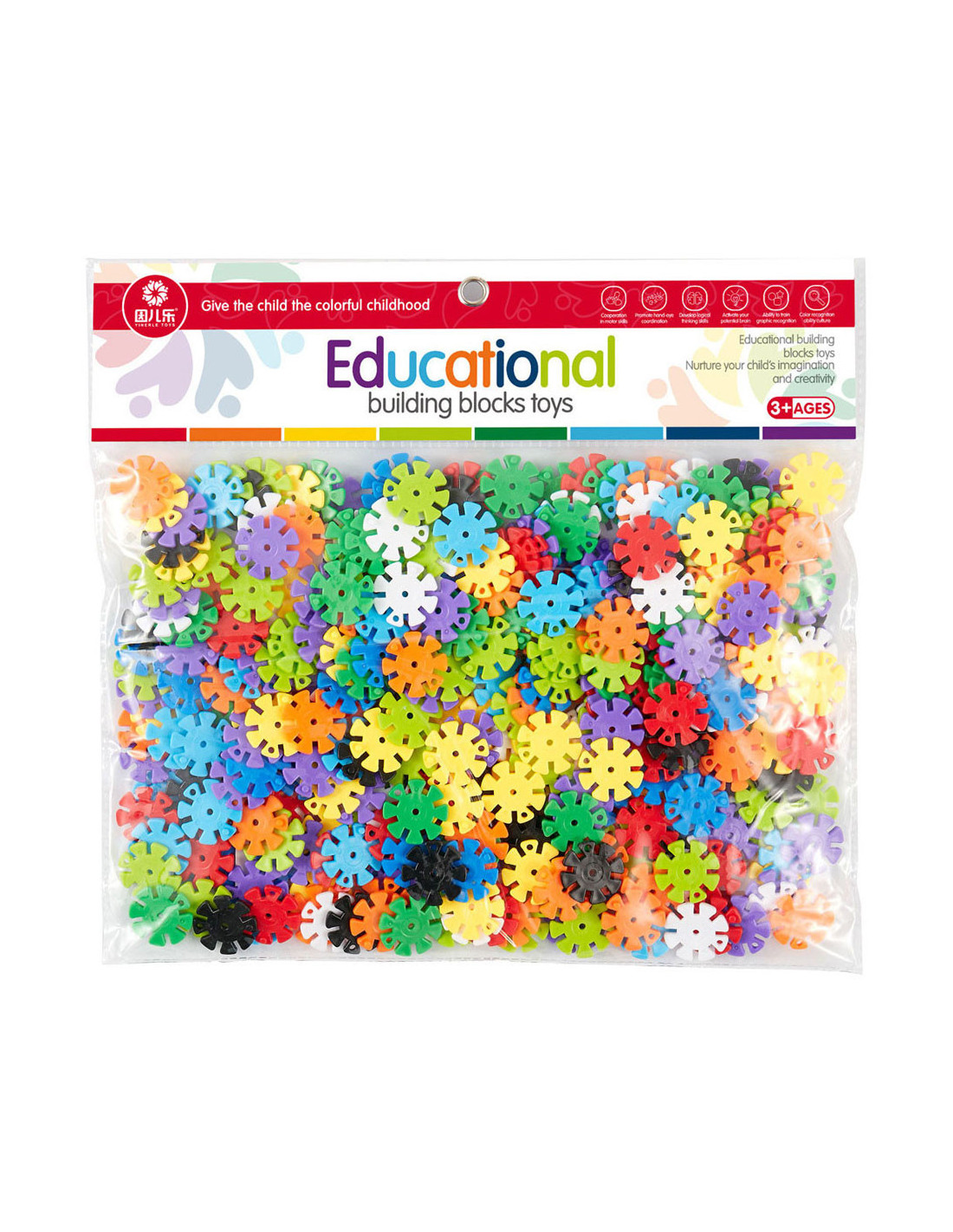 Set van 340 kunststof bouwschijfjes (2,8cm) met inkepingen rondom. Inclusief voorbeelden. Geschikt vanaf 3 jaar.