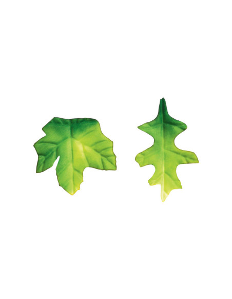 Lente- en zomerbladeren, set van 200. 100 esdoornbladeren en 100 eikenbladeren. Esdoornbladeren zijn 6,5 cm x 6,5 cm. Eikenbladeren zijn 8 cm x 5 cm. 100% polyester. De bladeren zien er realistisch uit met levendige kleuren en duidelijke nerven.
