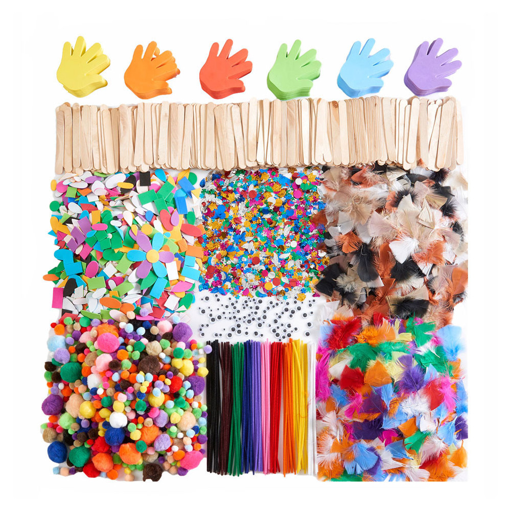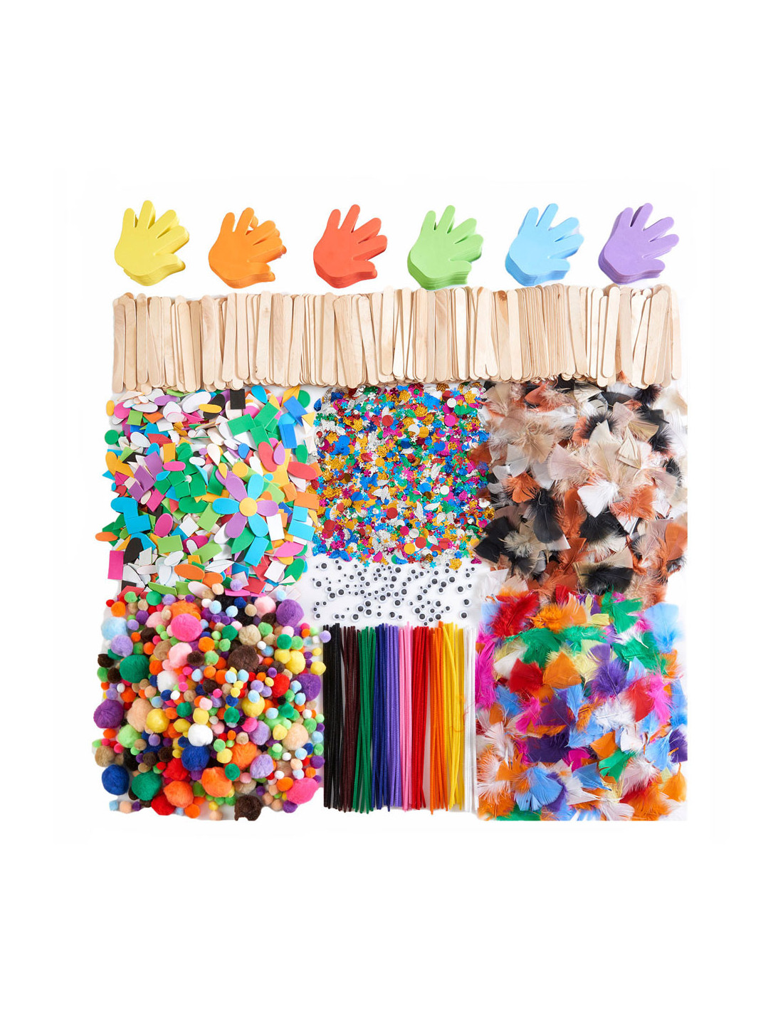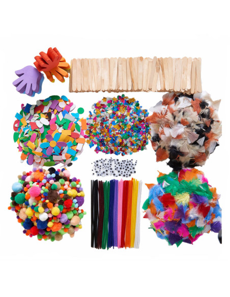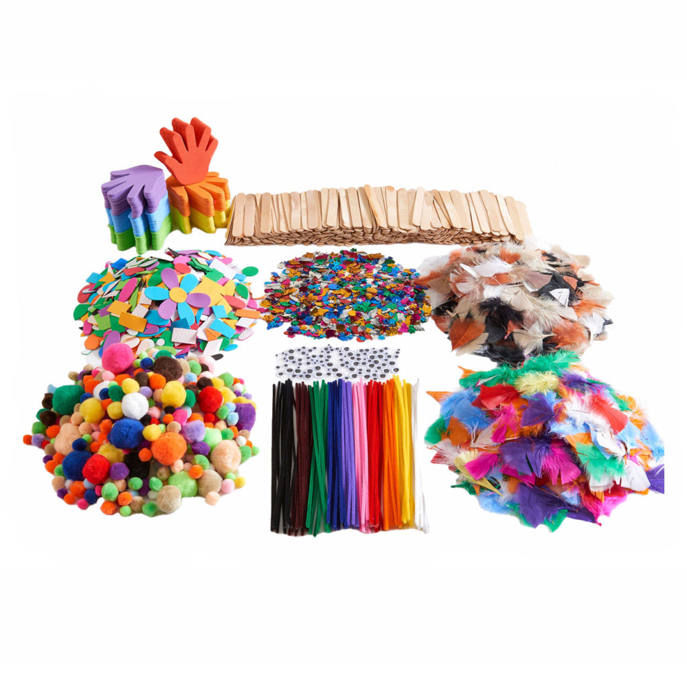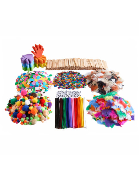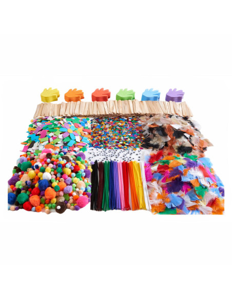 Alles wat je nodig hebt om je creativiteit een vliegende start te geven! Dit buitengewoon complete pakket knutselmaterialen bevat alle benodigdheden voor urenlang knutselen in de klas of op de groep, waaronder: 300 verschillende pompons, 100 verschillende pijpenragers, 1000 verschillende, zelfklevende