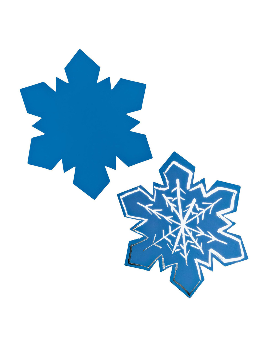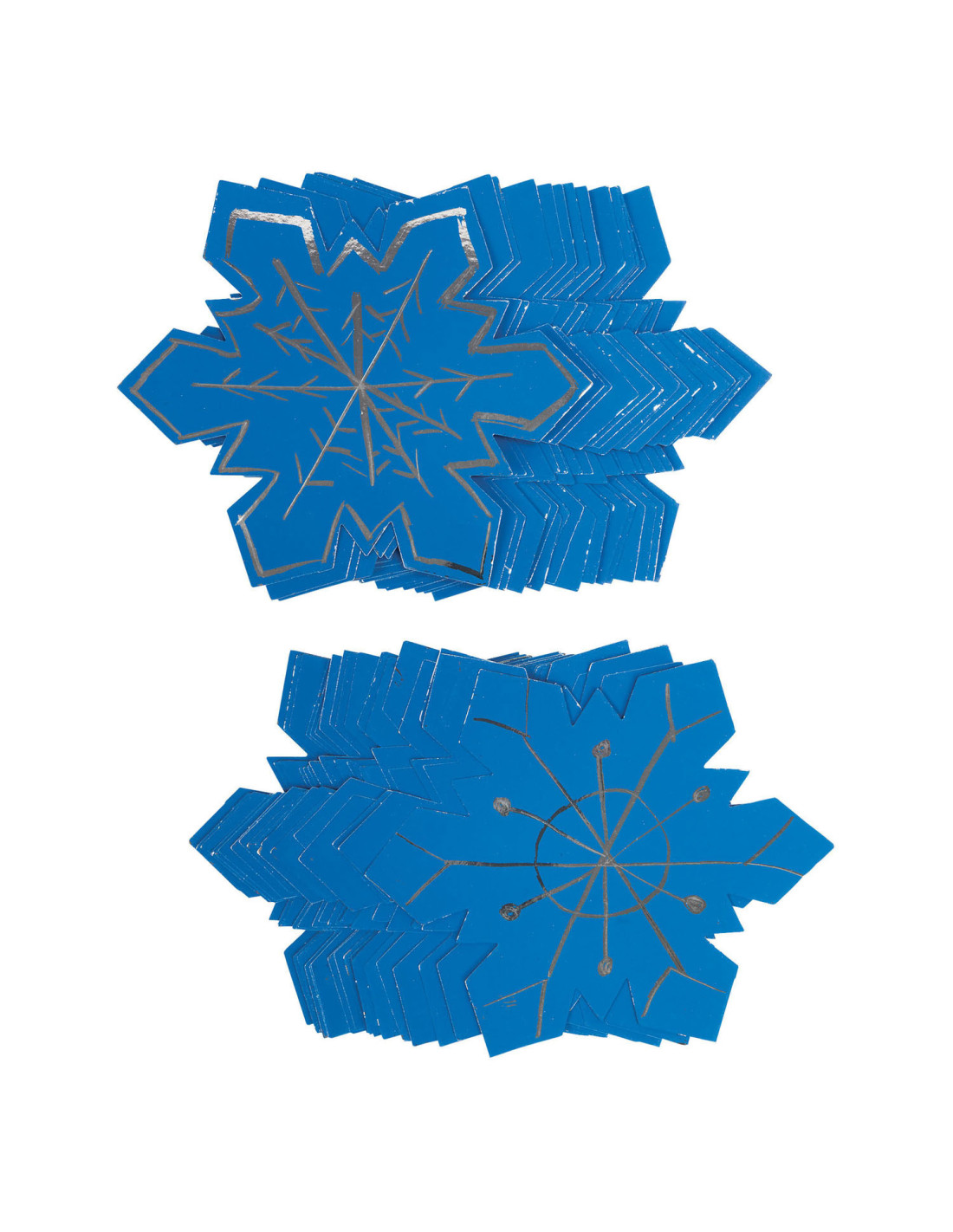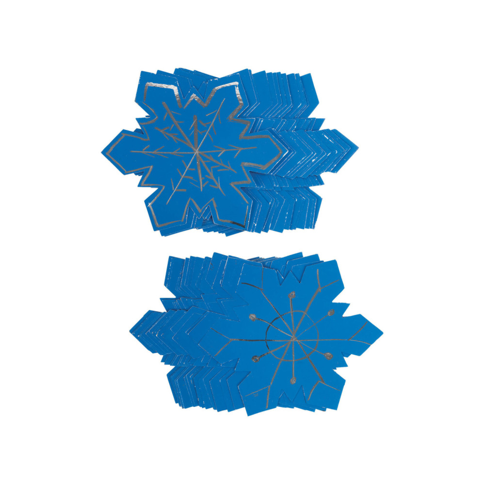 Deze leuke jumbo-sneeuwvlokken hebben een blauw oppervlak met ijzig zilver eronder! Een set van 36 sneeuwvlokken zorgt gegarandeerd voor veel plezier!